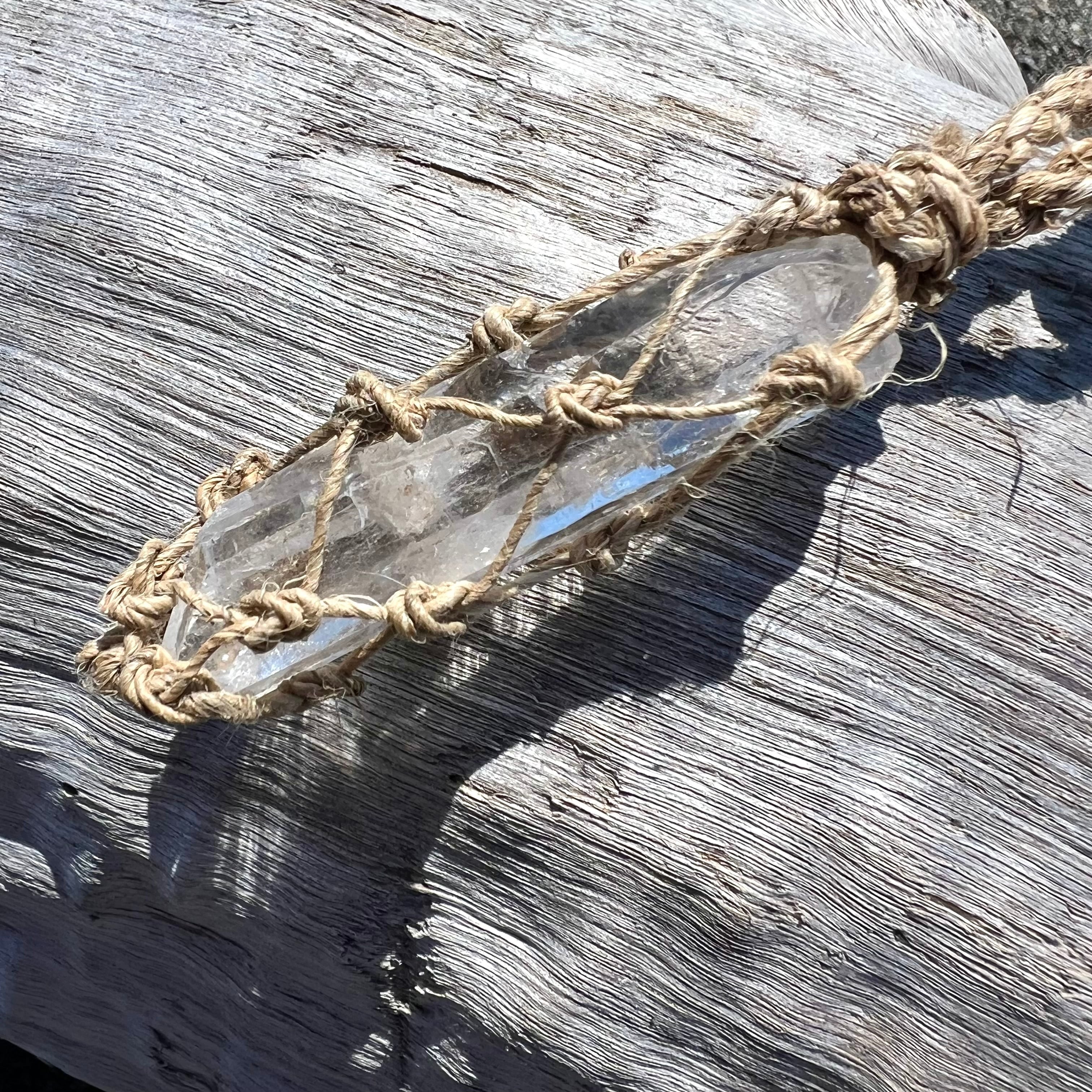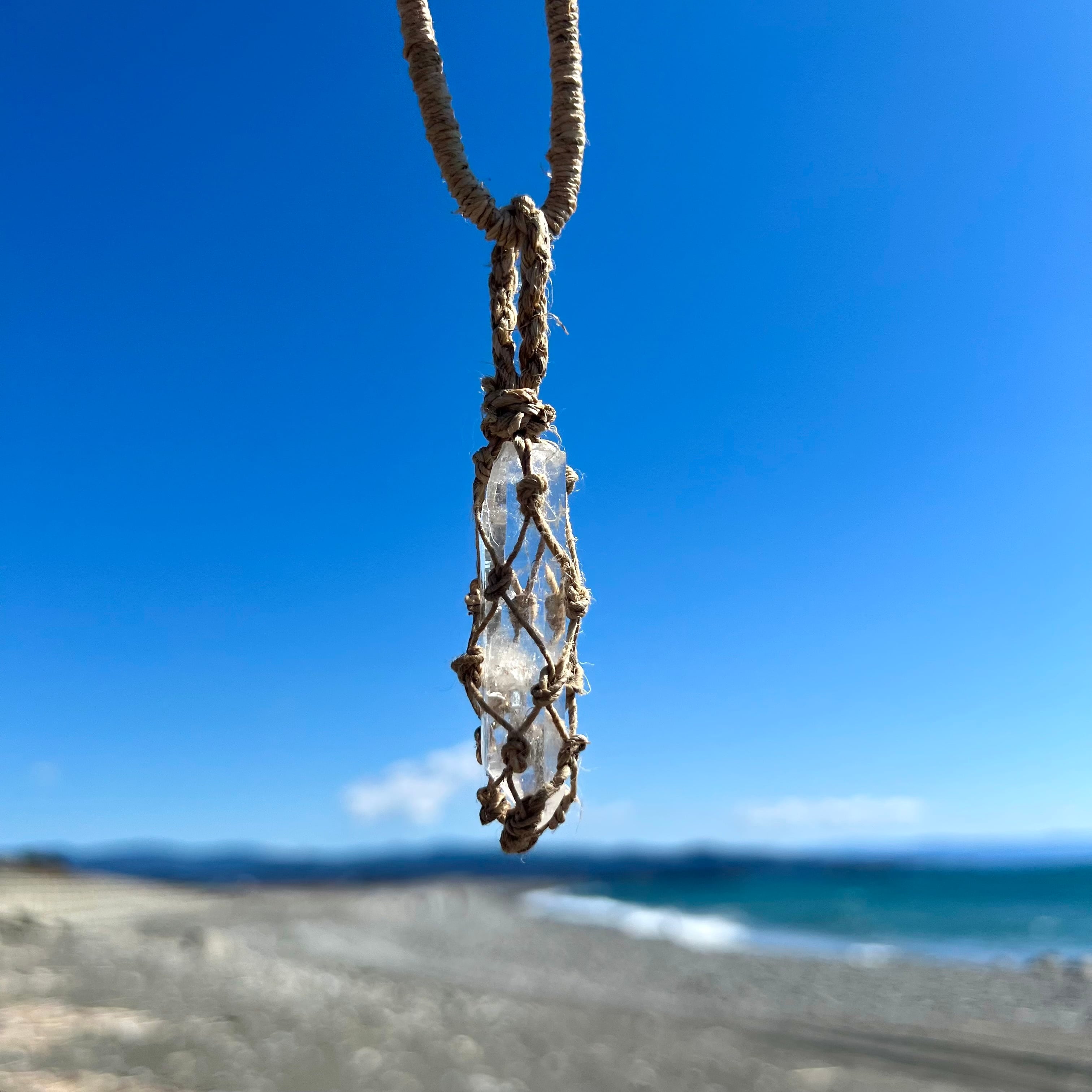 自然からの頂物、、ひとつひとつ表情があり個性豊かなクリスタルをネパールのヘンプ糸で編んで包んでいます。
