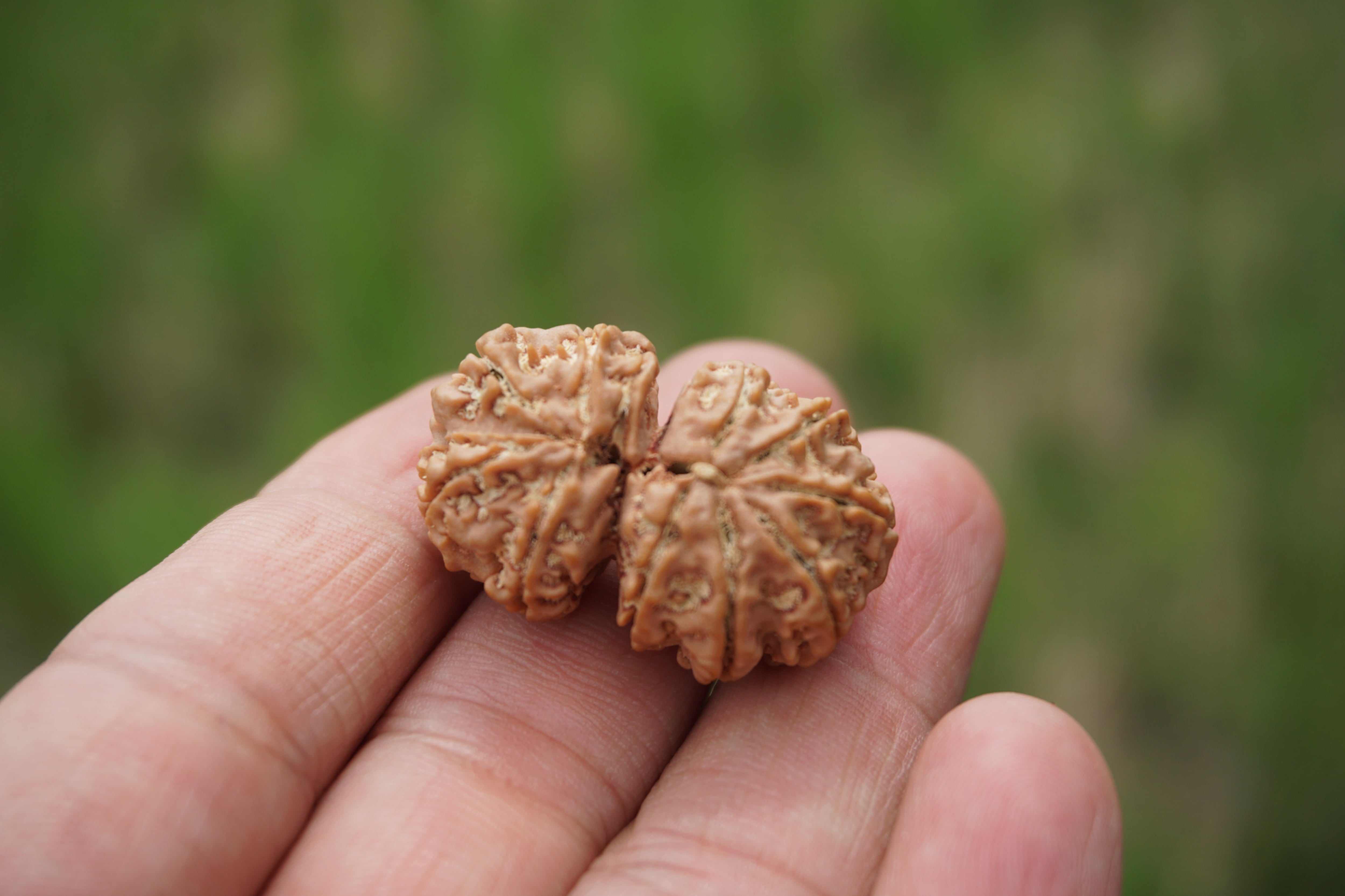 ⚫︎2つのルドラクシャが自然のなかで結合した珍しい神聖なビーズです。