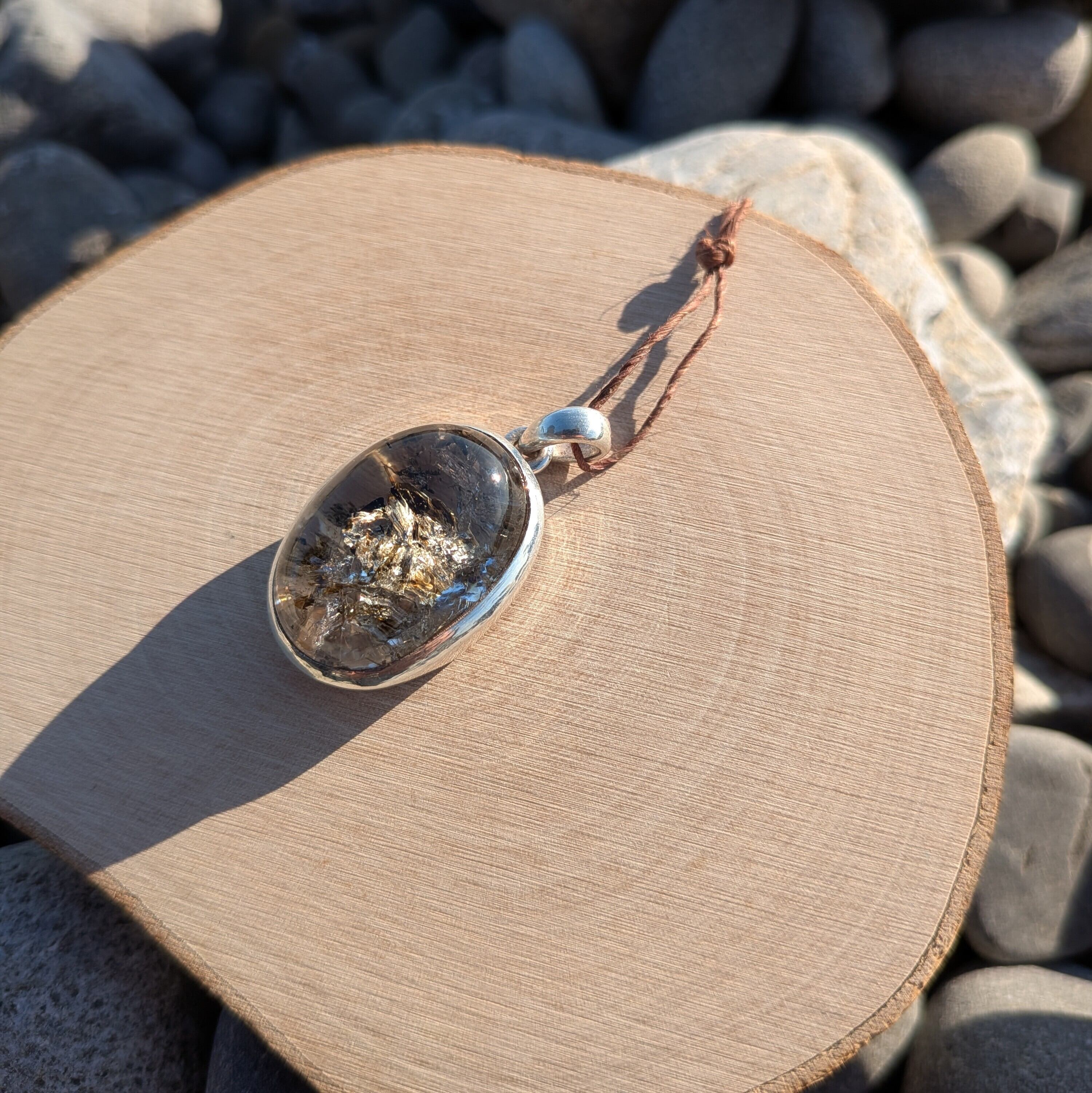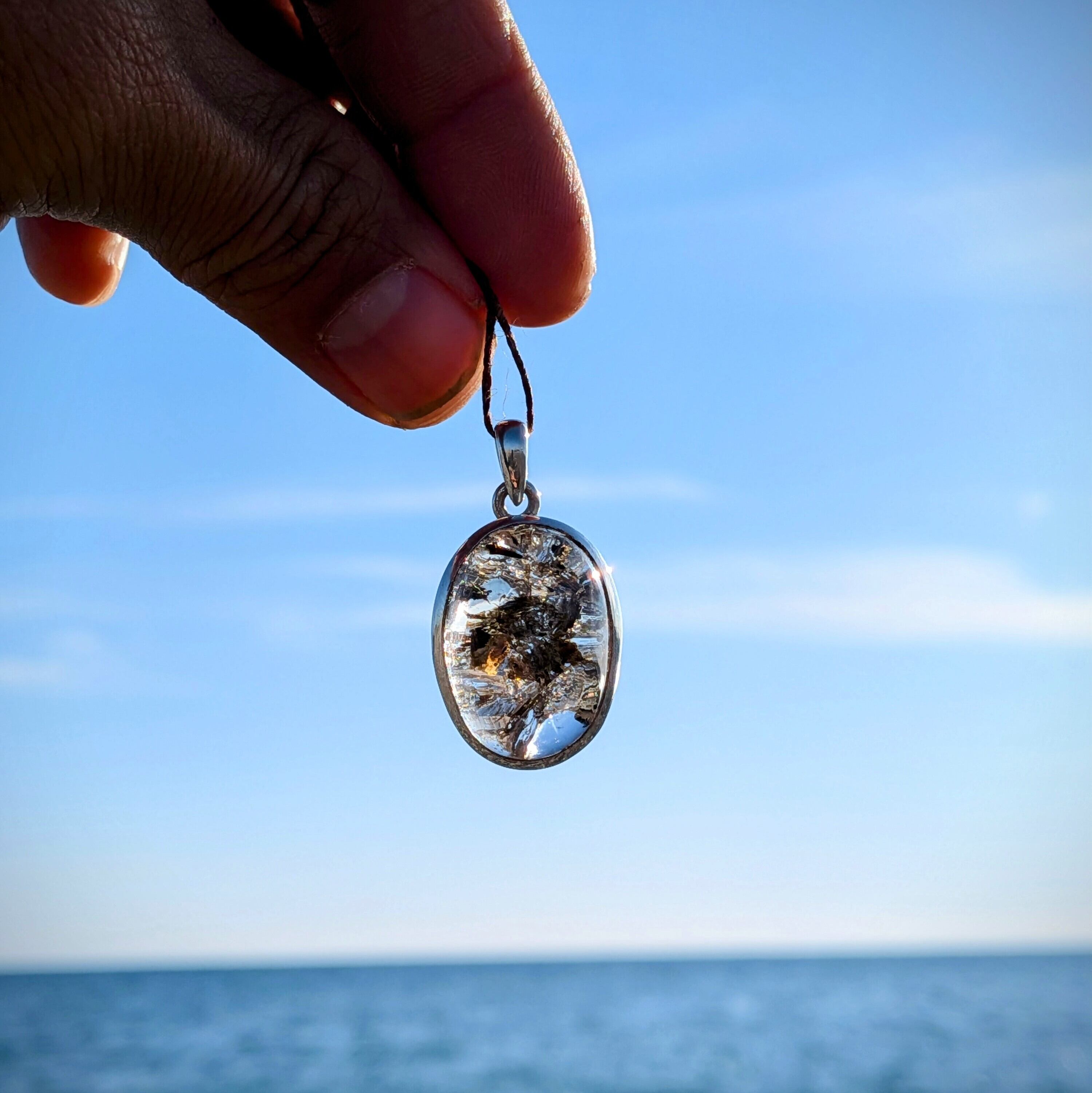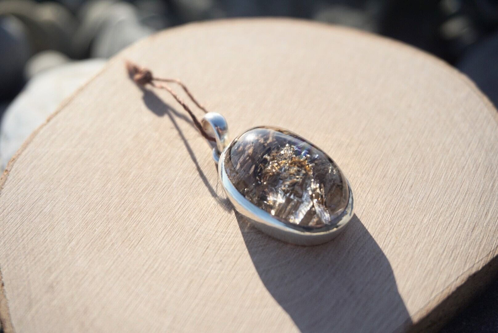ペンダントの右の方にはインクルージョンが入っており虹色に輝いています。