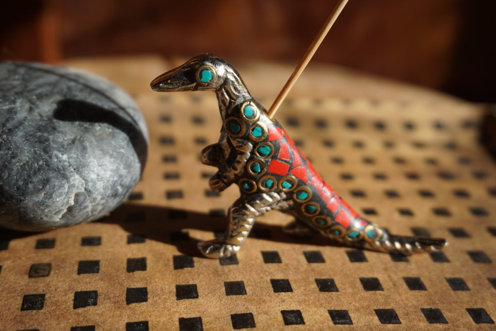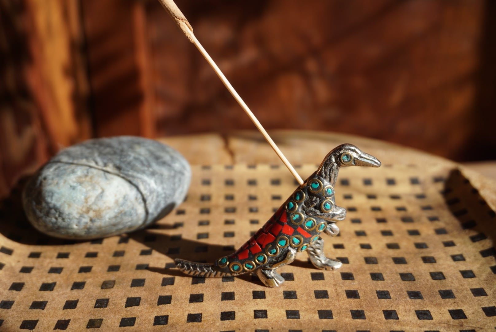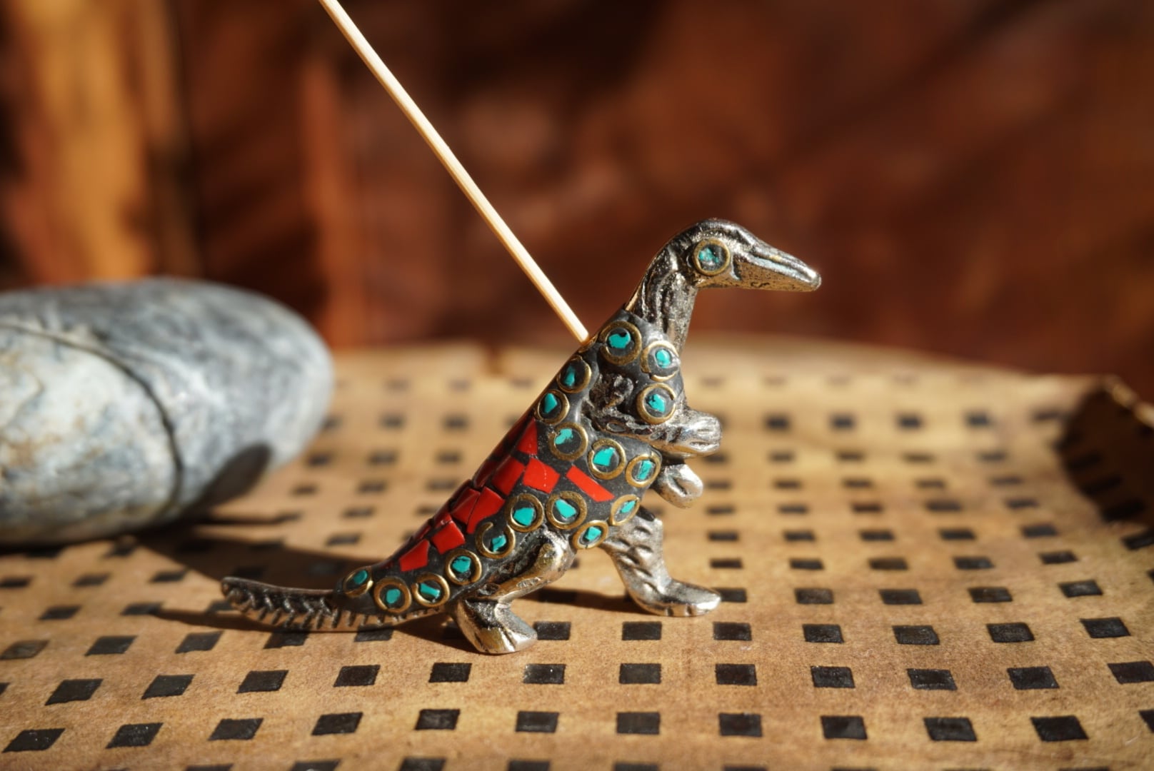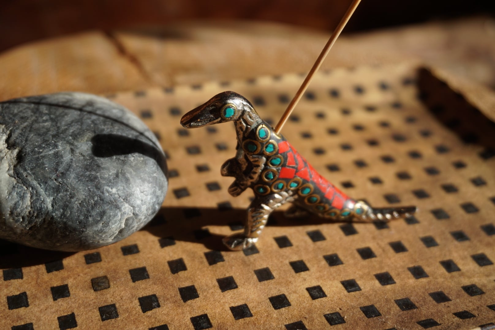 お香立て 恐竜 ターコイズ 珊瑚 ホワイトシルバー