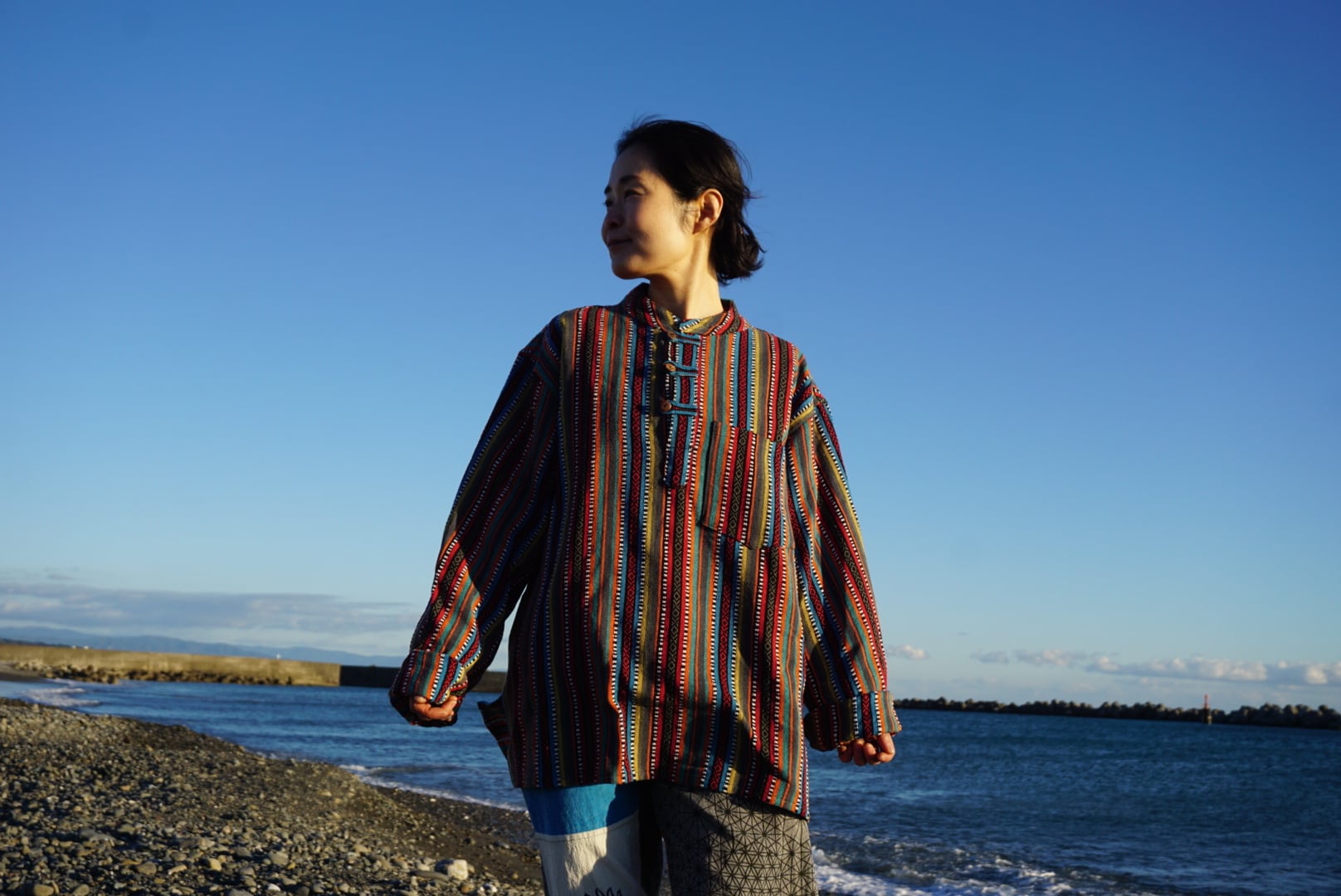 クルタシャツ ネパール伝統 ゲリー織 コットン