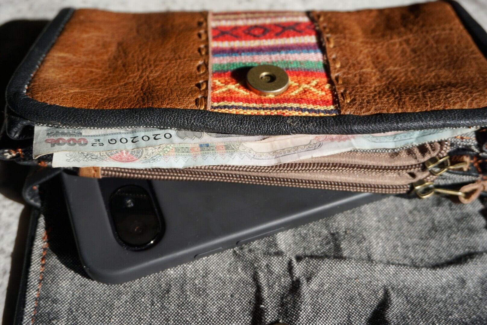 ●現金、カード、スマホ、手帳、通帳、パスポートなど何でも入る収納力抜群