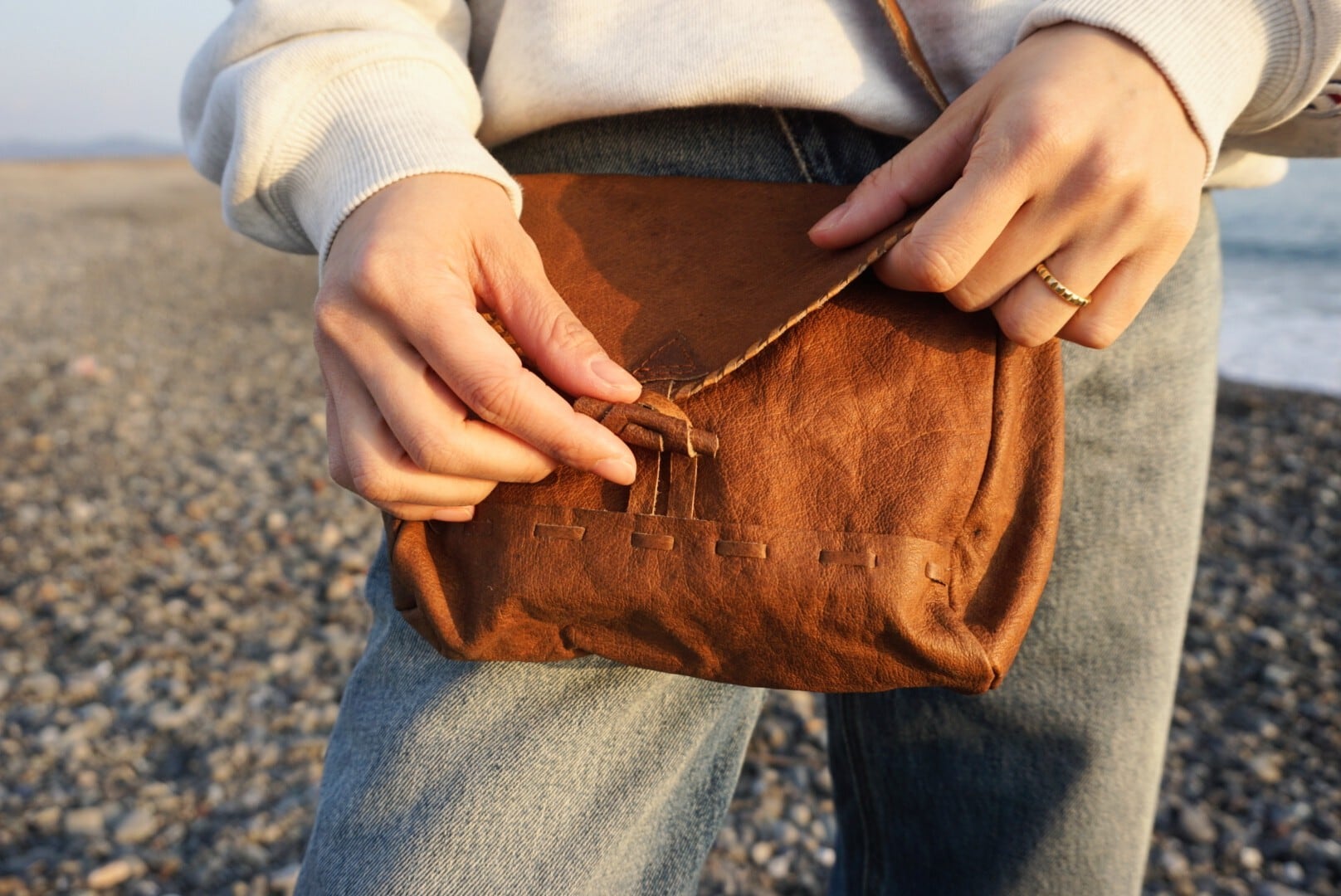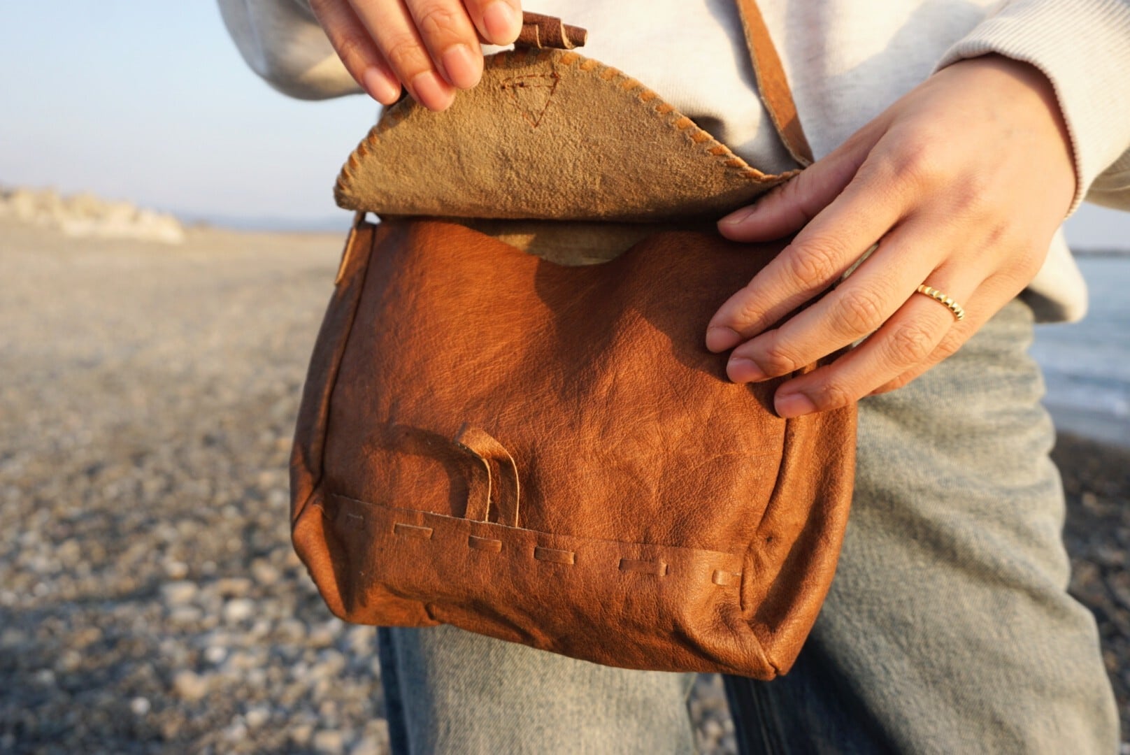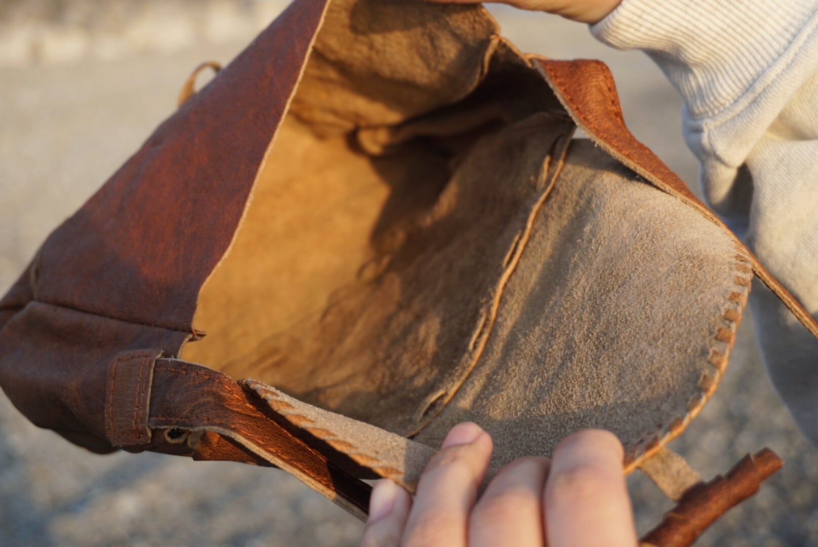 すべて手作業で自然の中でワイルドに作られる革には、独特な味わいとネパールの革職人さんが時間をかけて制作した情熱が感じられます。