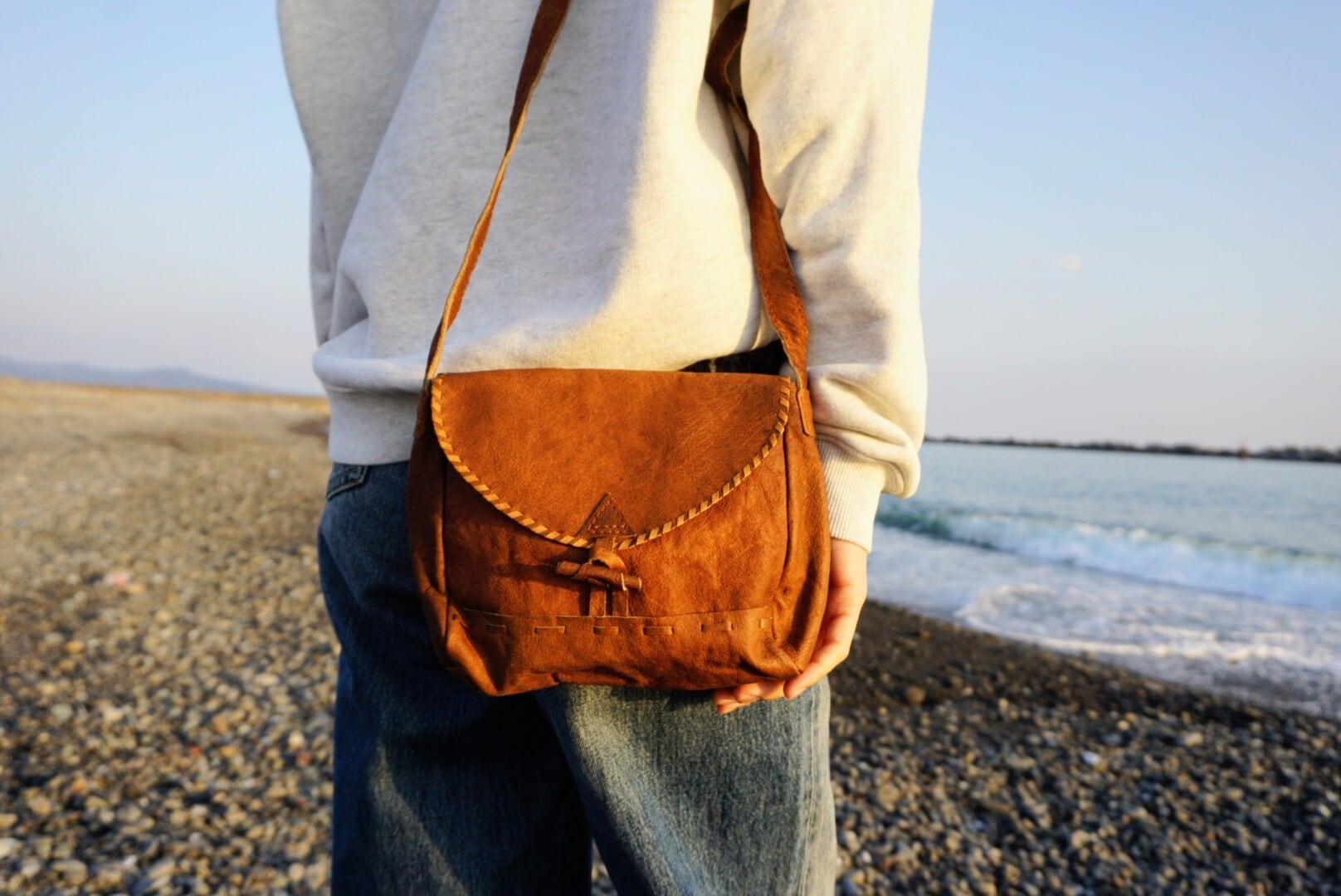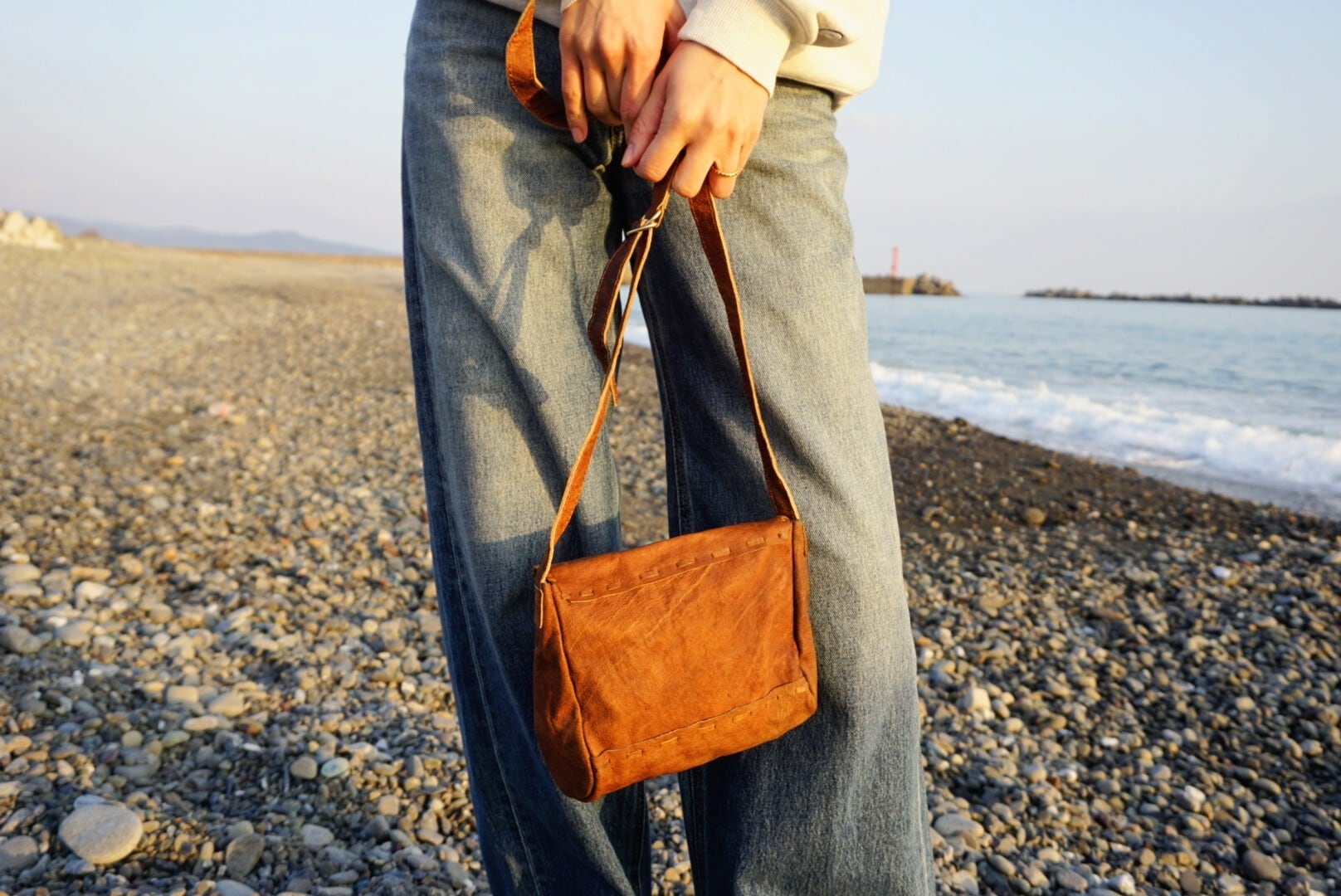 ビレッジレザーの革は個体差がすごくあるのですが、こちらのバッグは柔らかい革で明るめの色味に仕上がっています。