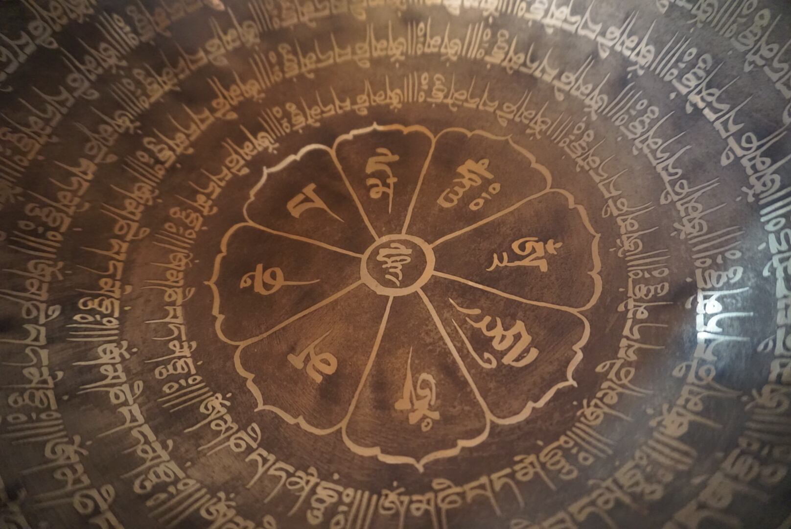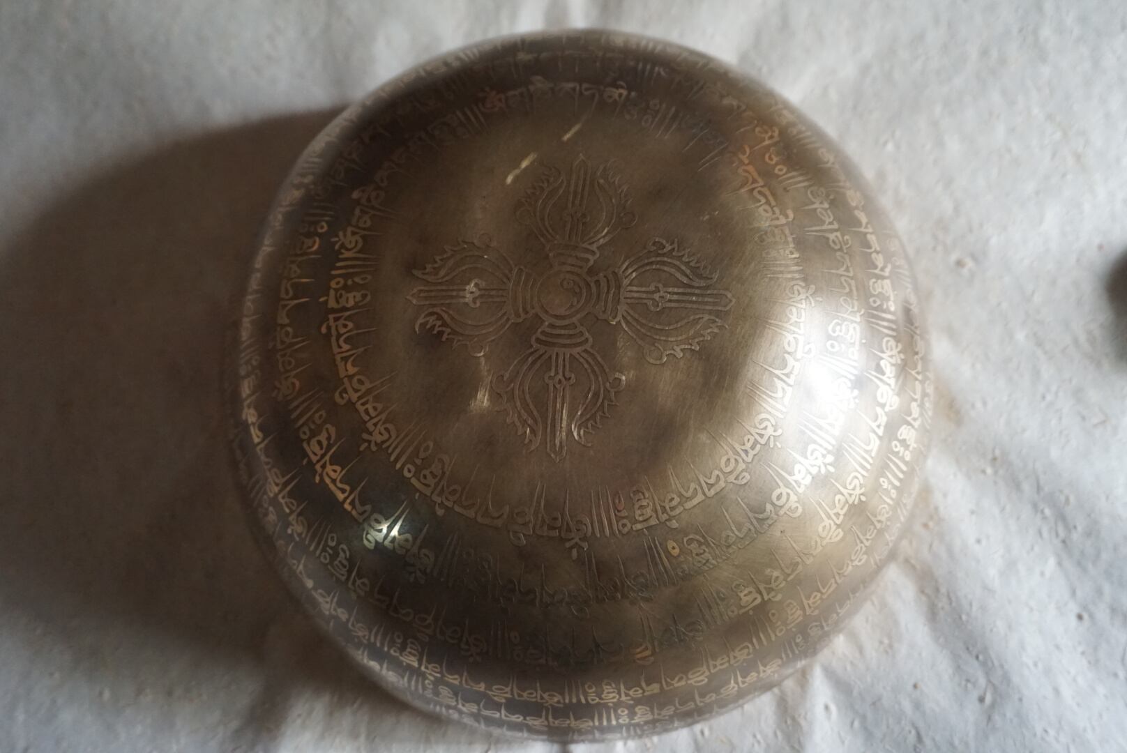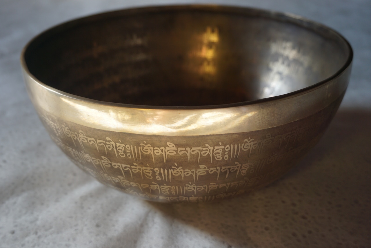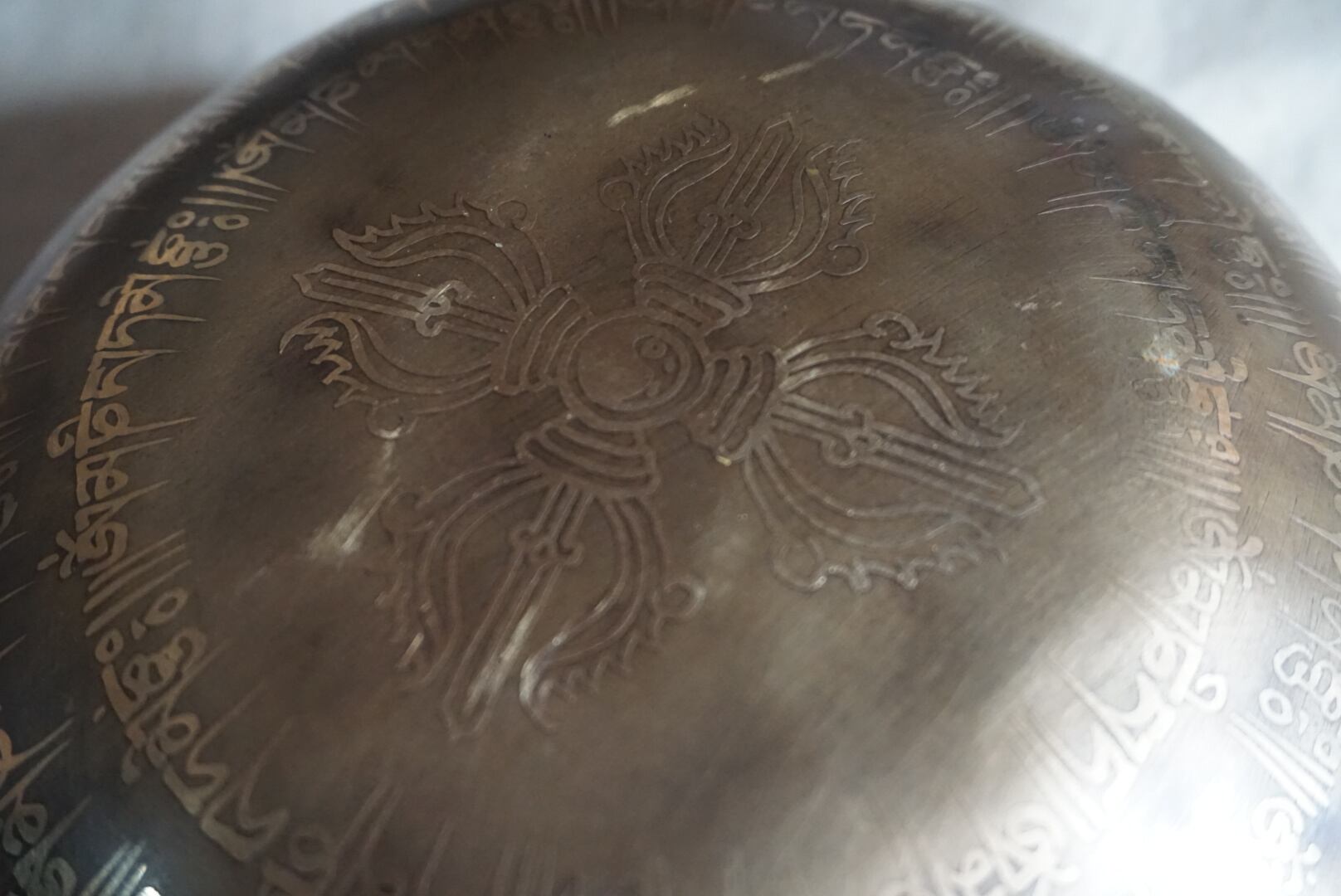 ボウルの中にはマントラが刻まれており、裏面にはヴァジュラが描かれています。