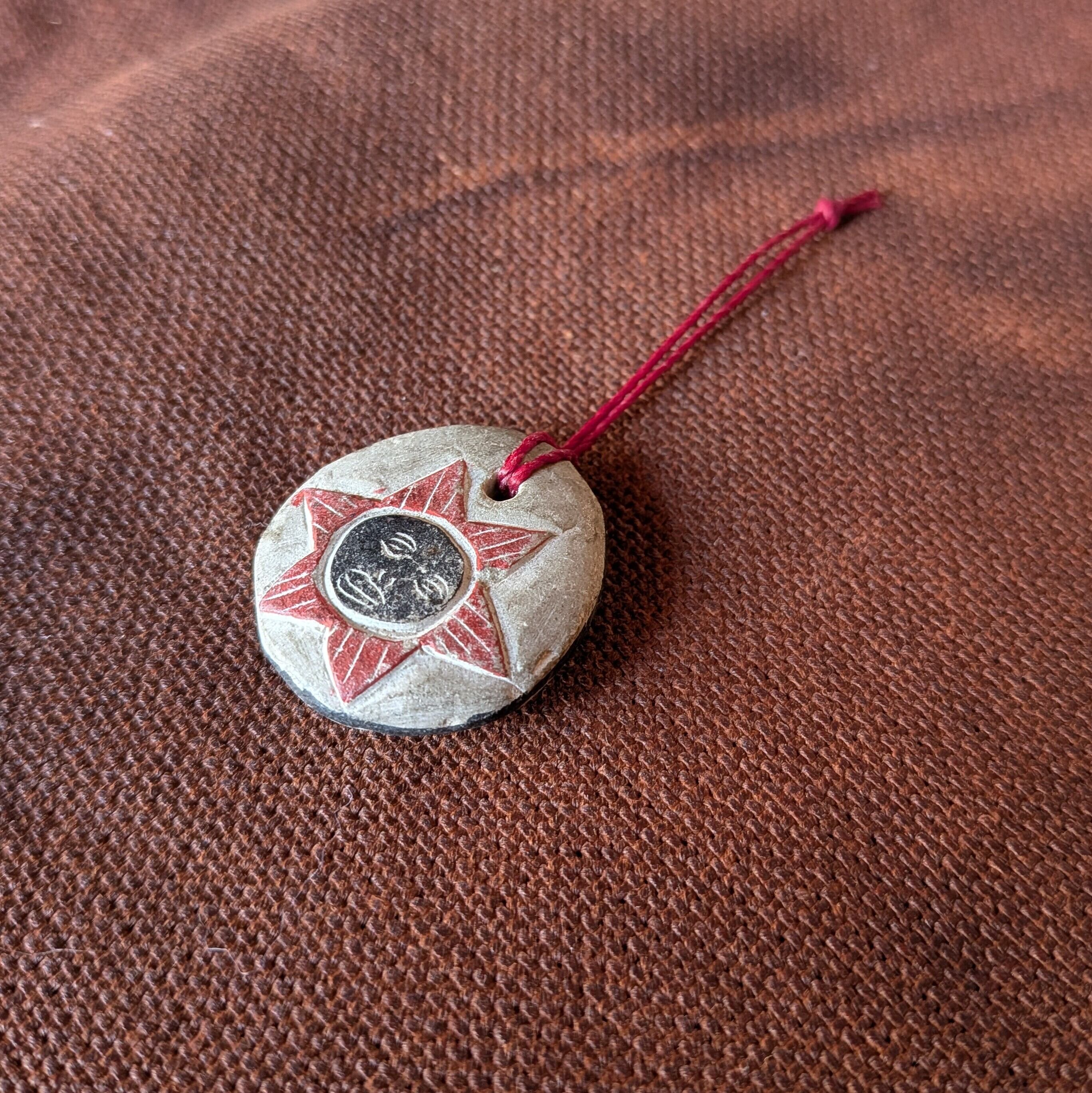 伝統的な手法を用いて、手彫りで作られたペンダント。
