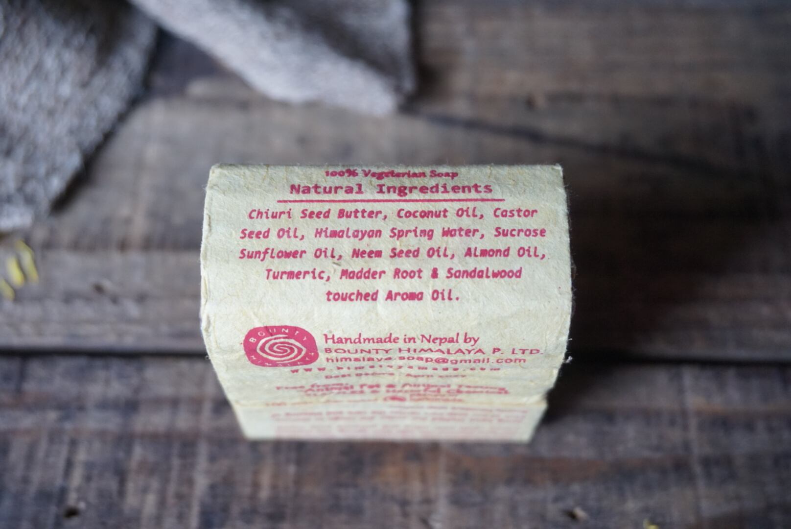 アーユルヴェーダ医師の父と植物学者の息子が、アーユルヴェーダの理論に基づいてレシピが完成しネパールの女性達によりすべて手作業で石鹸が作られています。