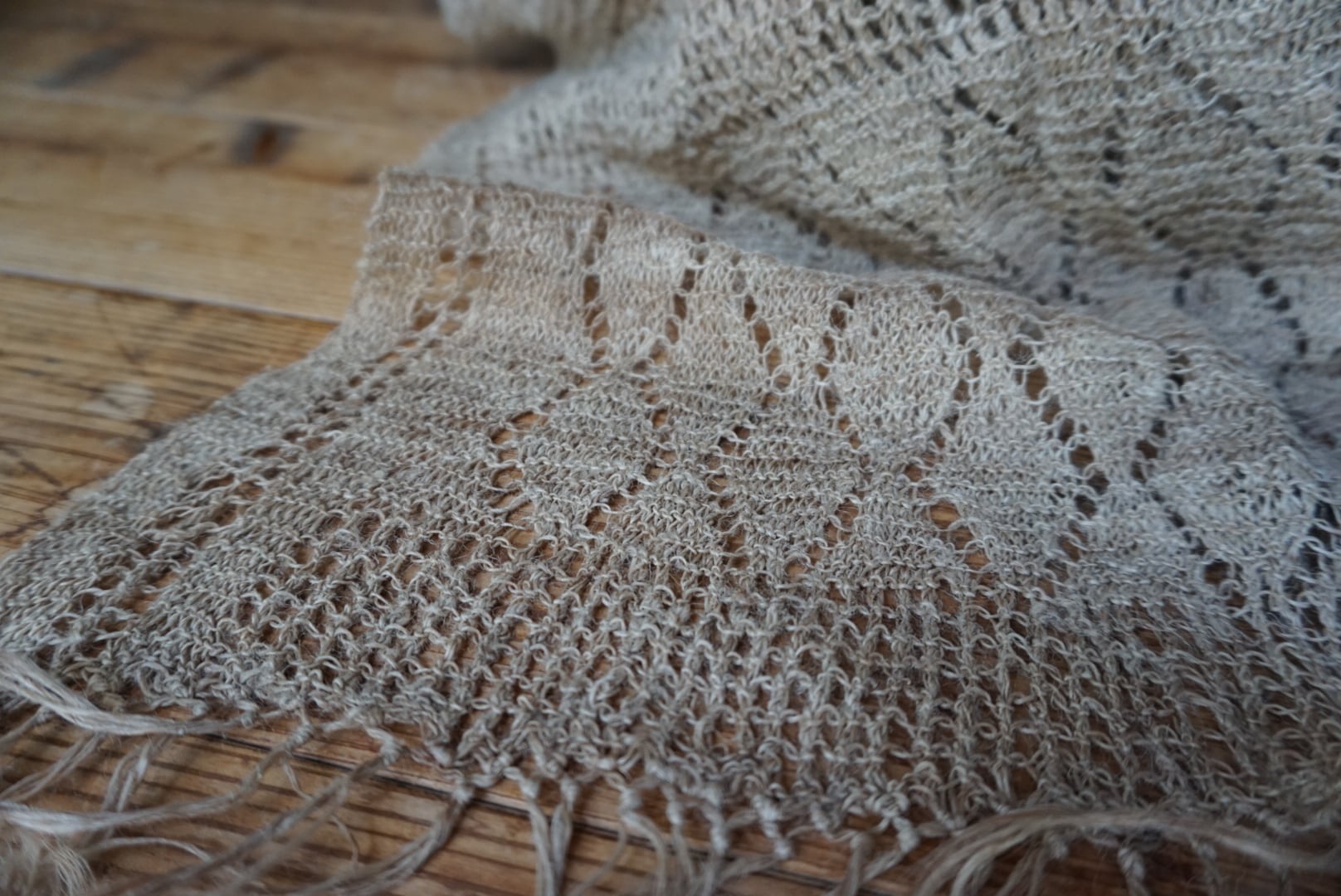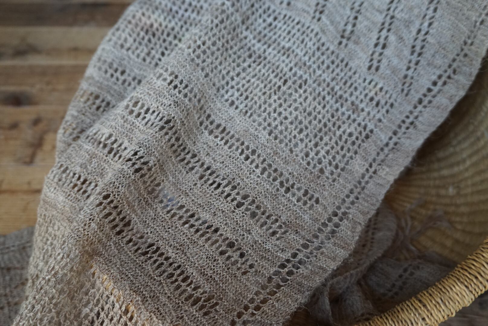 ネトルのショールは、素材の収穫から編みあげるまで3-4ヶ月かけて製作されます。