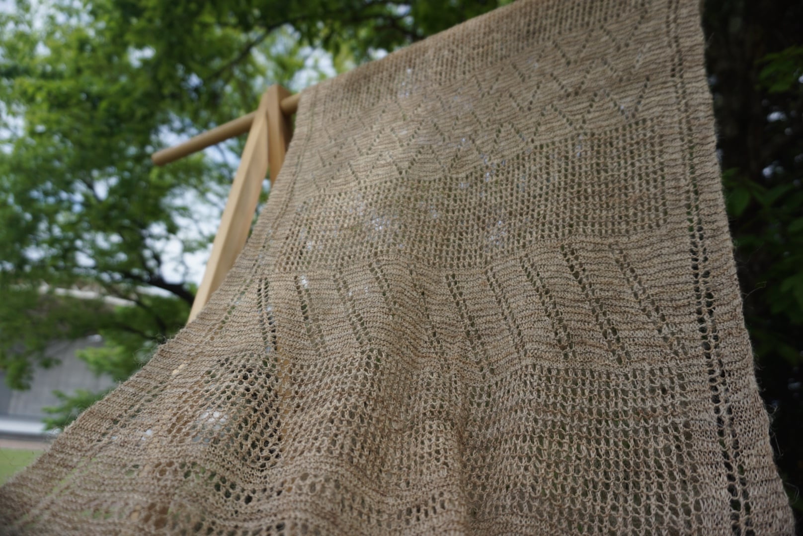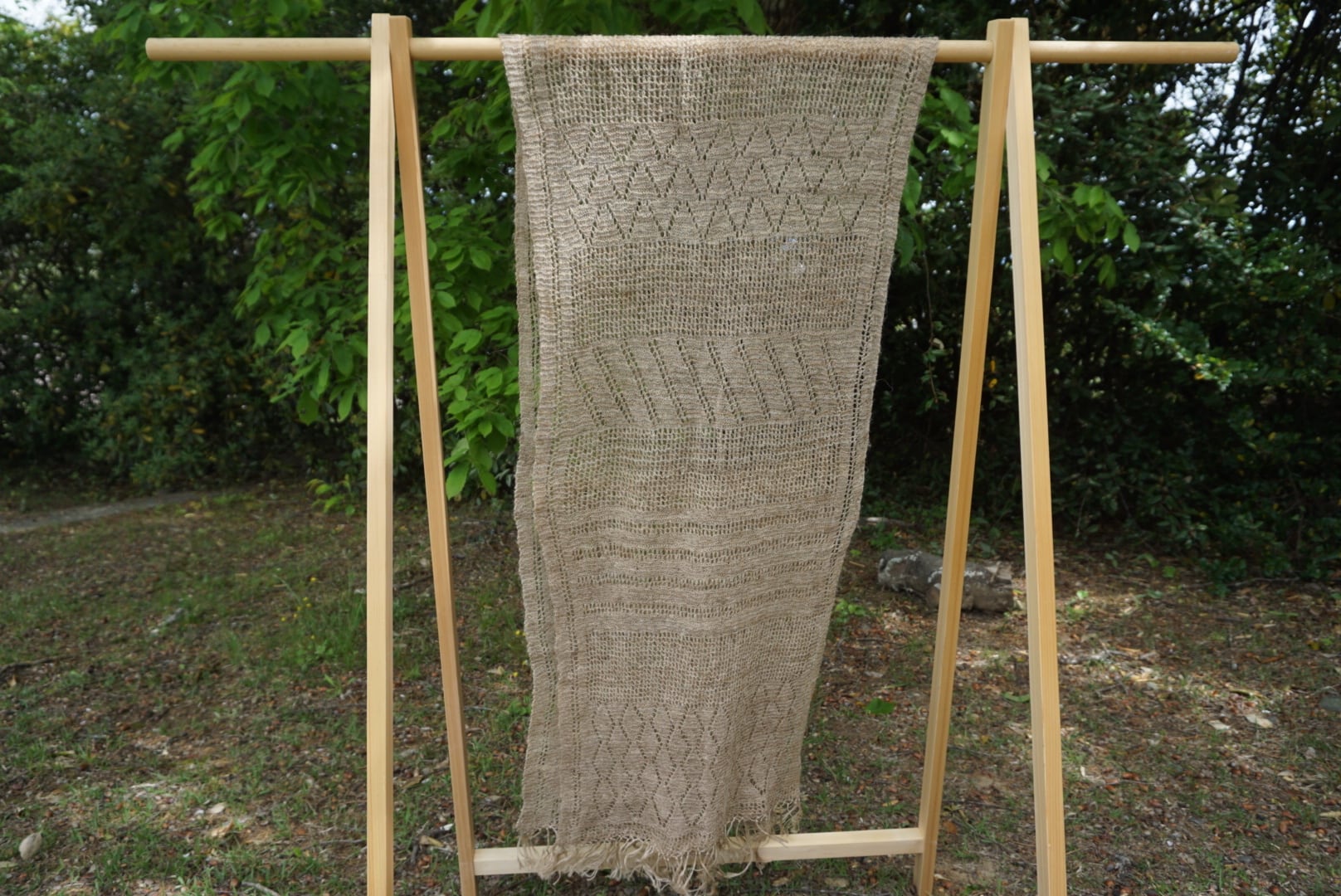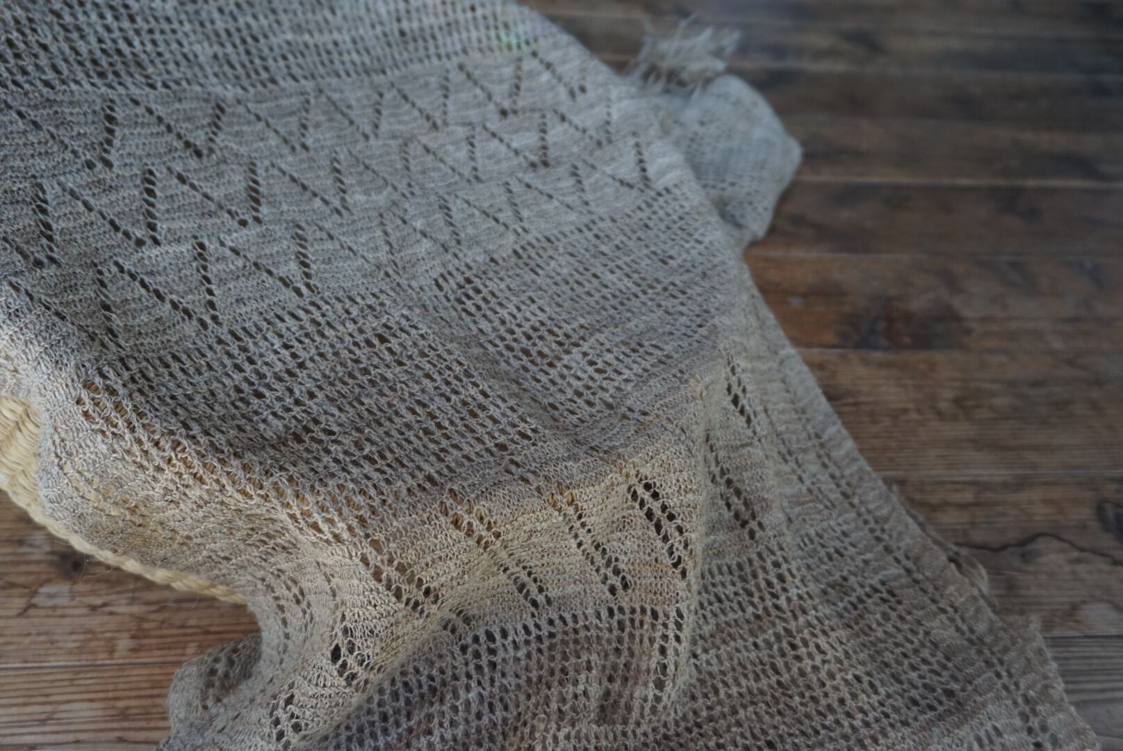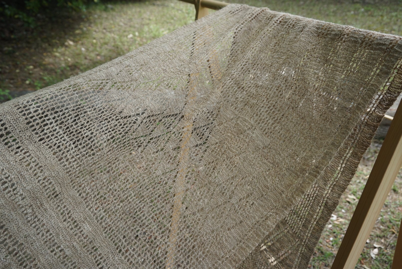 オールハンドメイドで作られたショールの肌さわりは柔らかく、天然素材のヘンプよりもしなやかです。