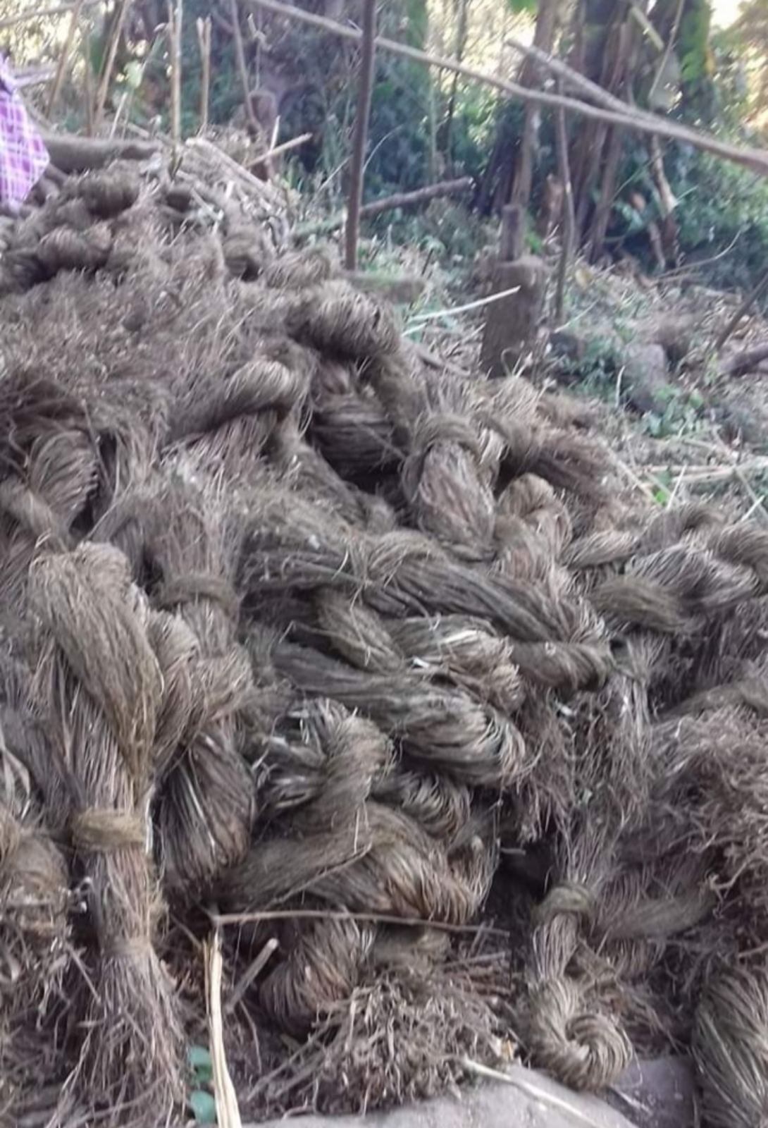 野生のネトル(標高約3000m)を収穫し乾燥させ、こん棒で何度も叩いて繊維を柔らかく鞣していきます。