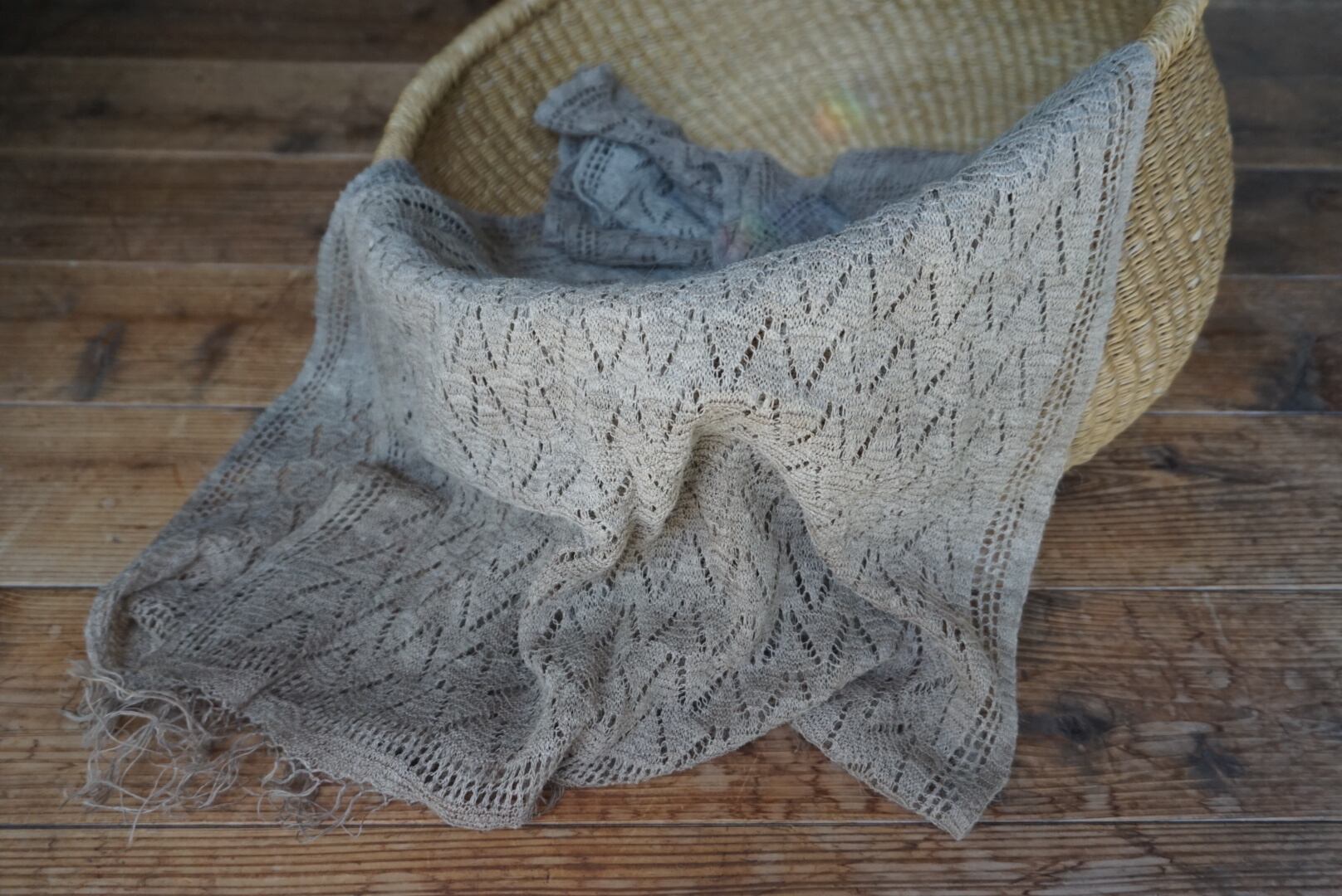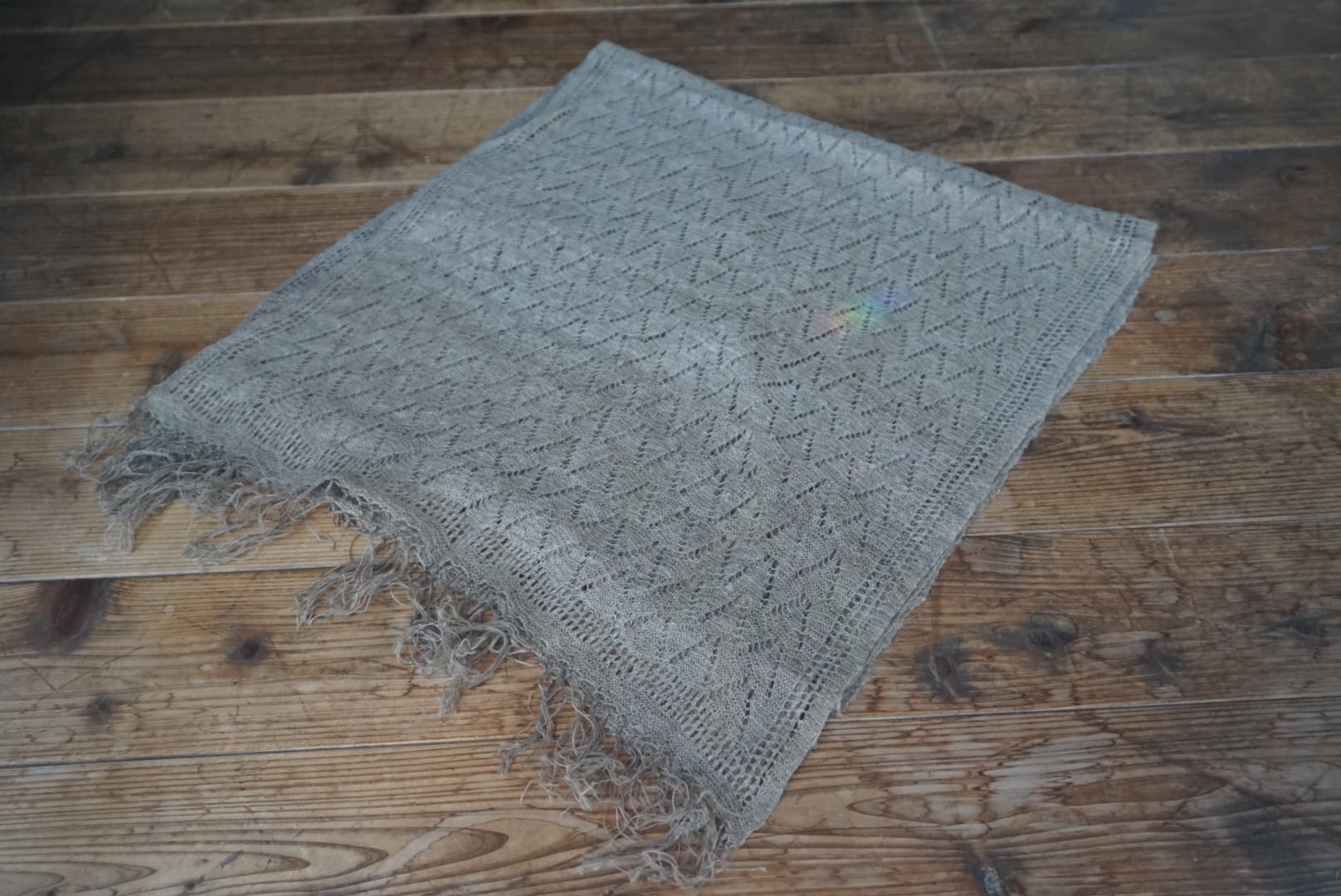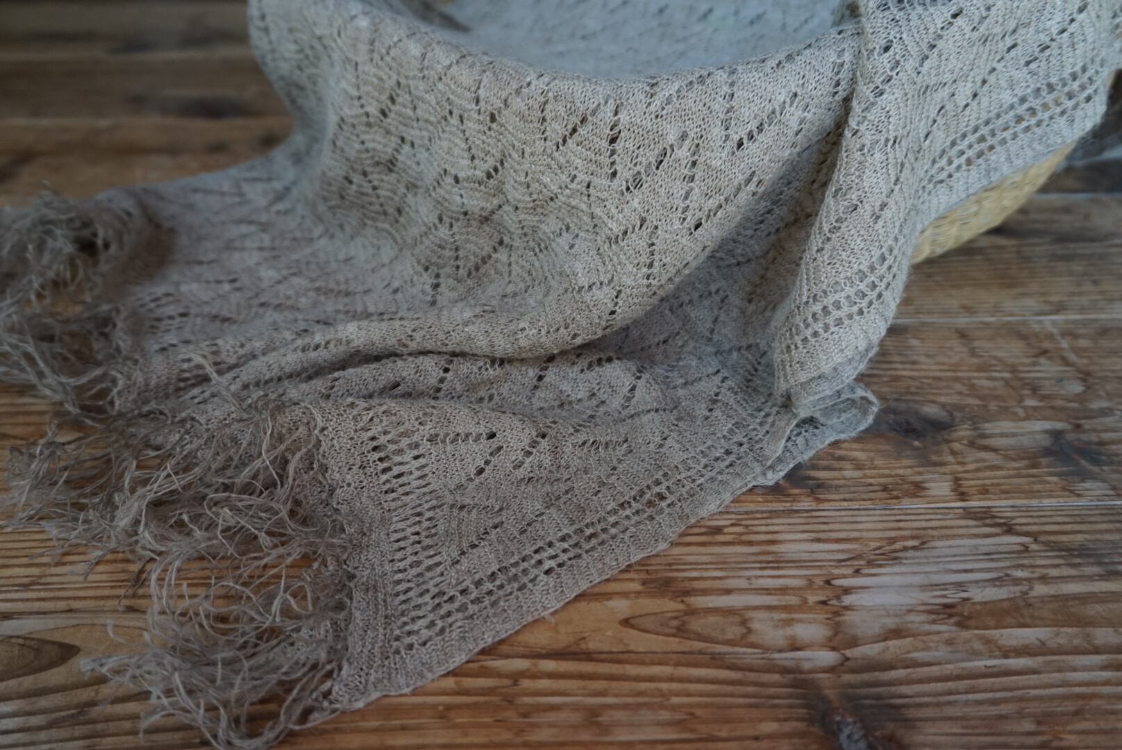 自然素材ならではの濃淡の彩りがショールを透かしてみると楽しめます。