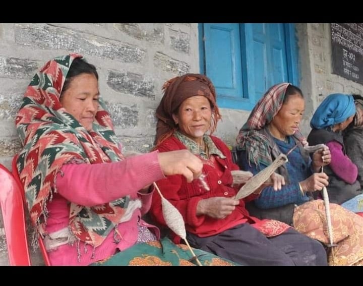 野生のネトル(標高約3000m)を収穫し乾燥させ、こん棒で何度も叩いて繊維を柔らかく鞣していきます。