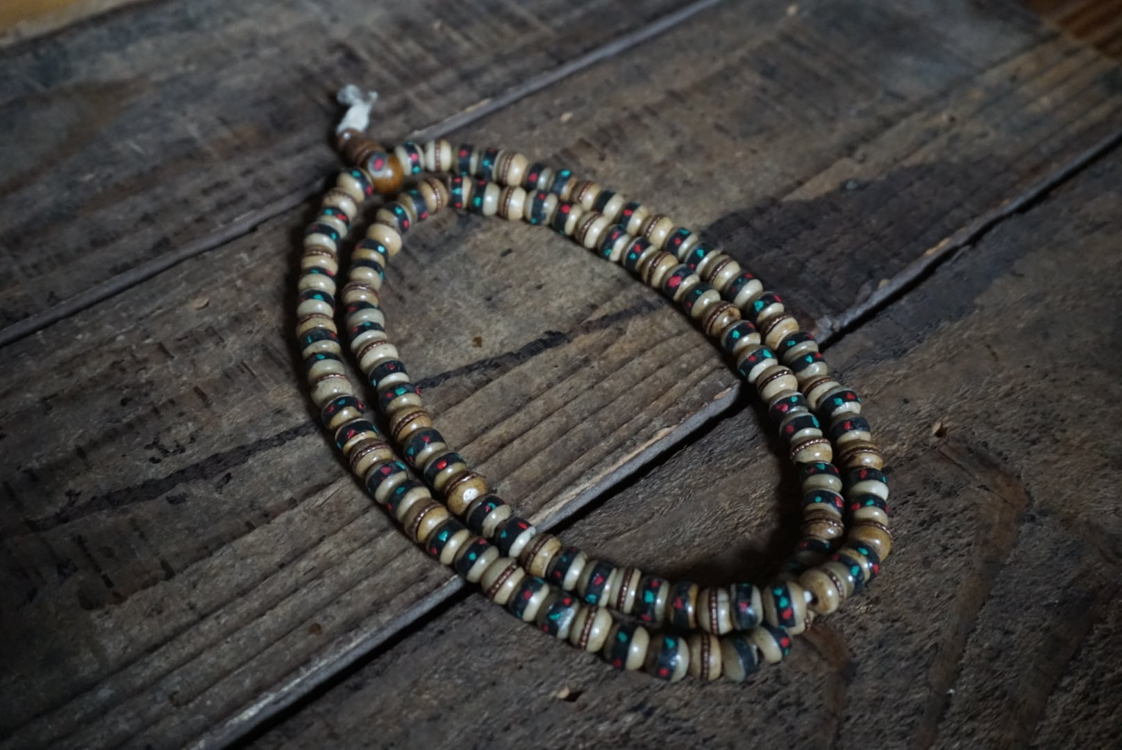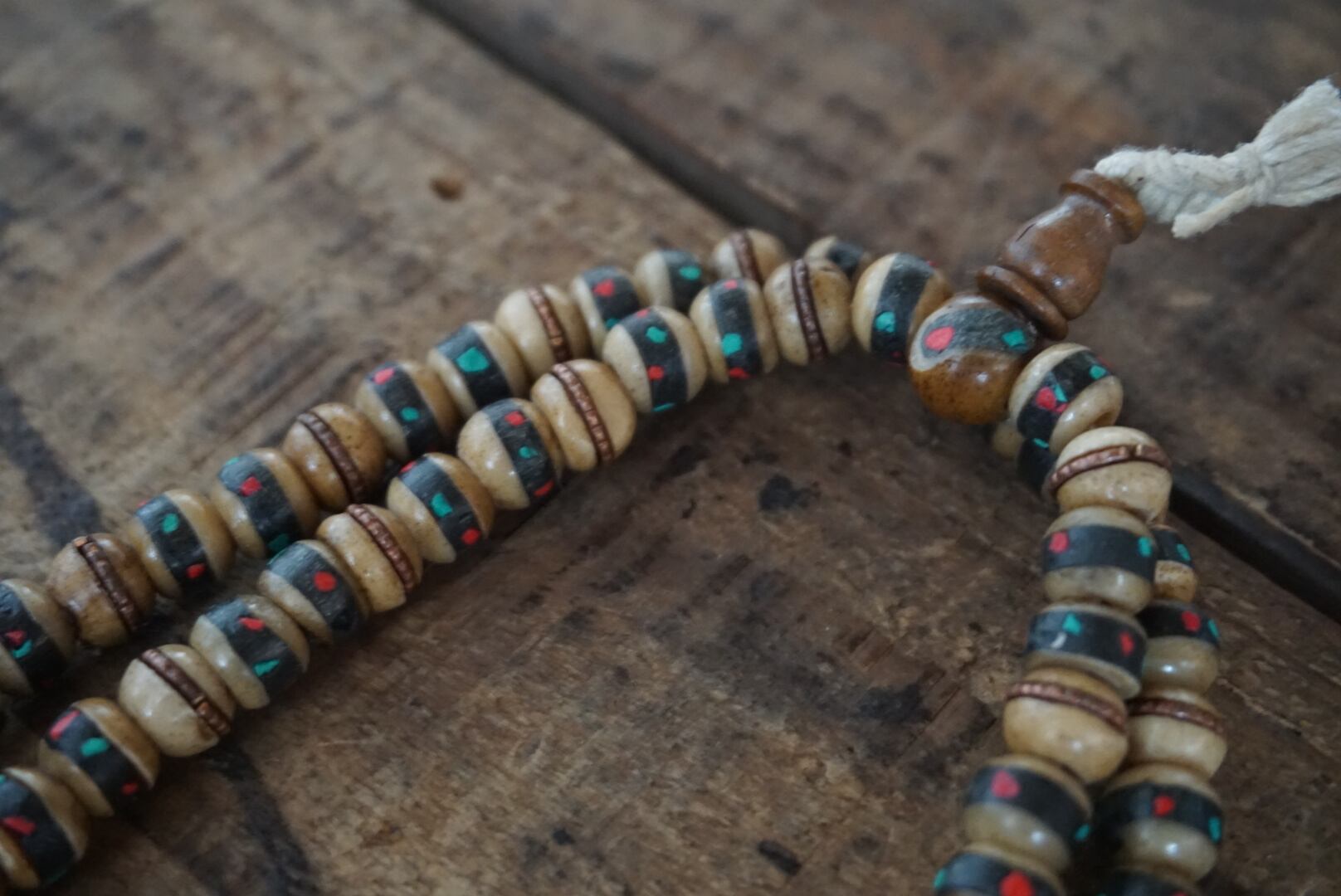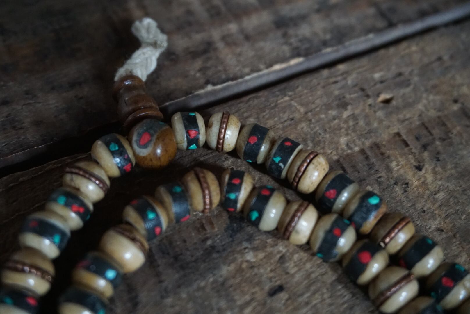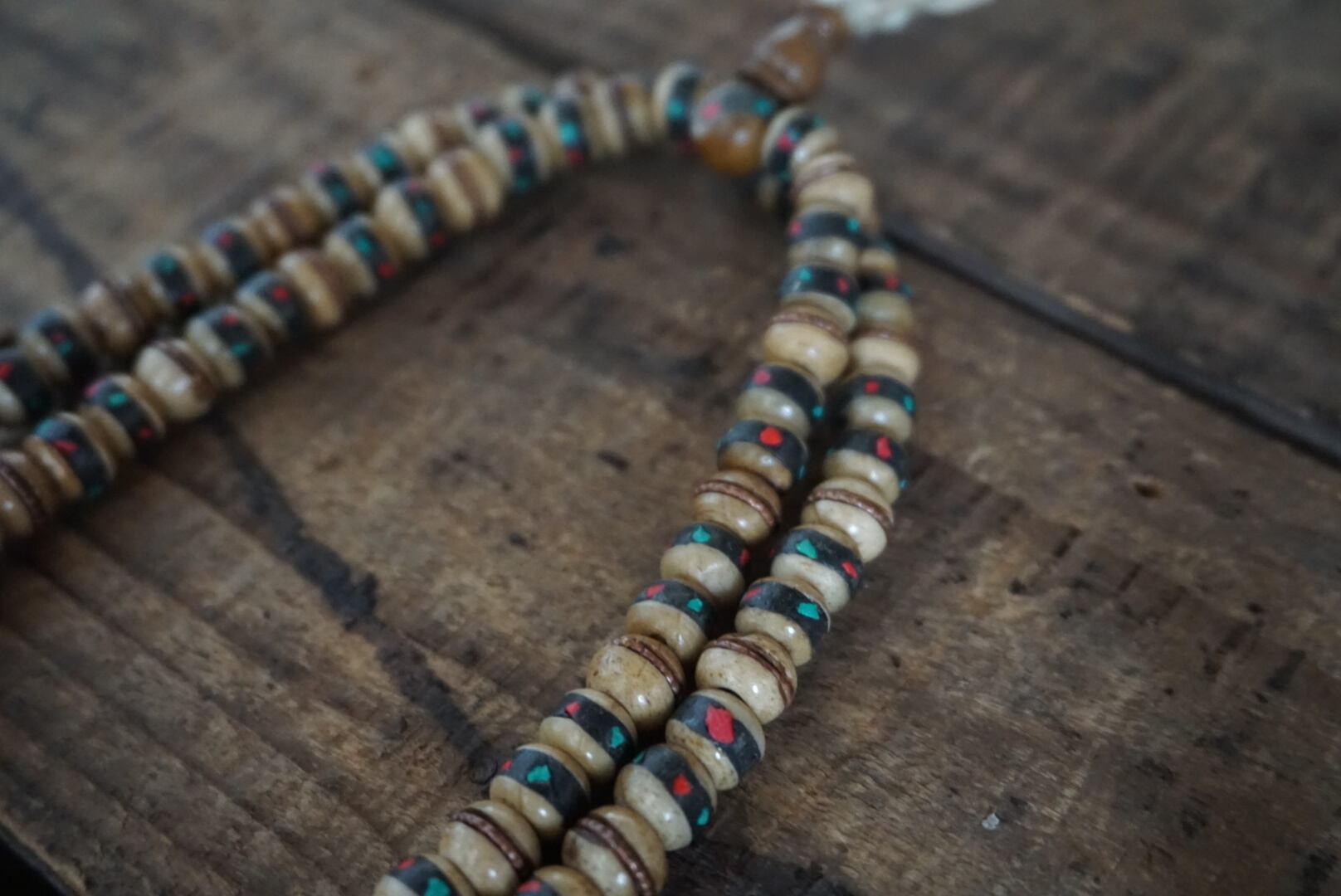 水牛ボーンのナチュラルビーズ108個のマーラ数珠になっています。