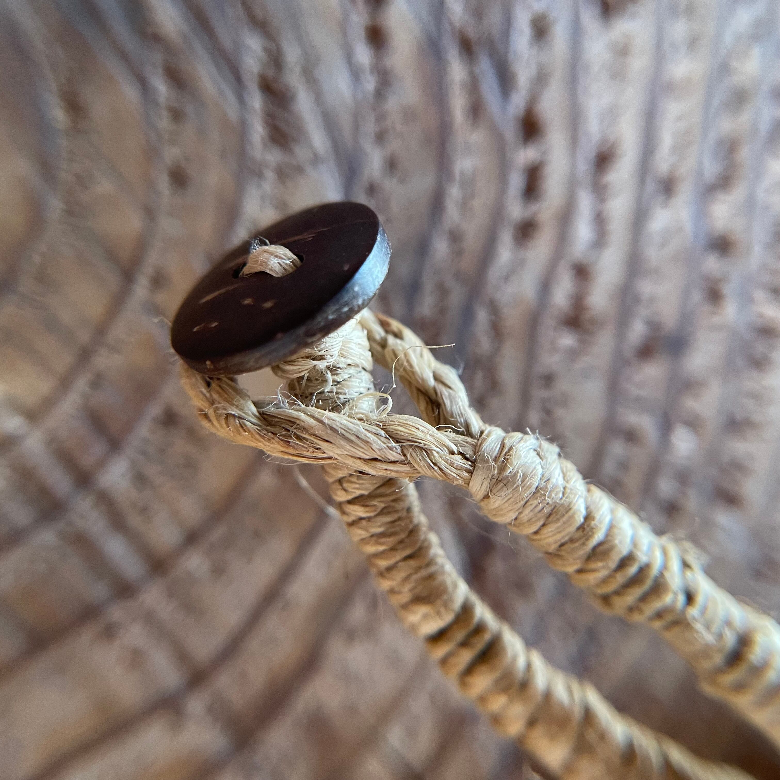 ネックレスの止める部分はココナッツのボタンを使っています。