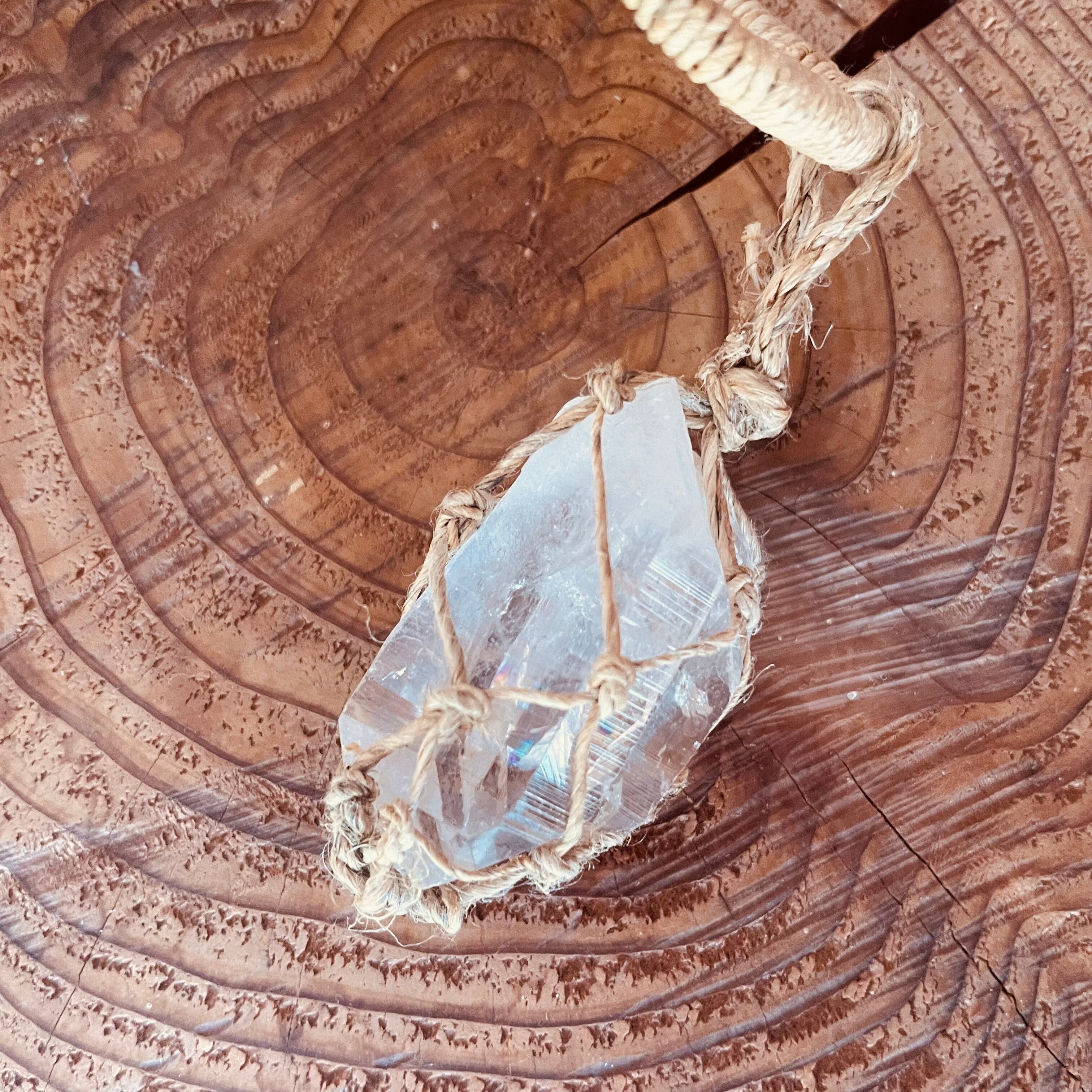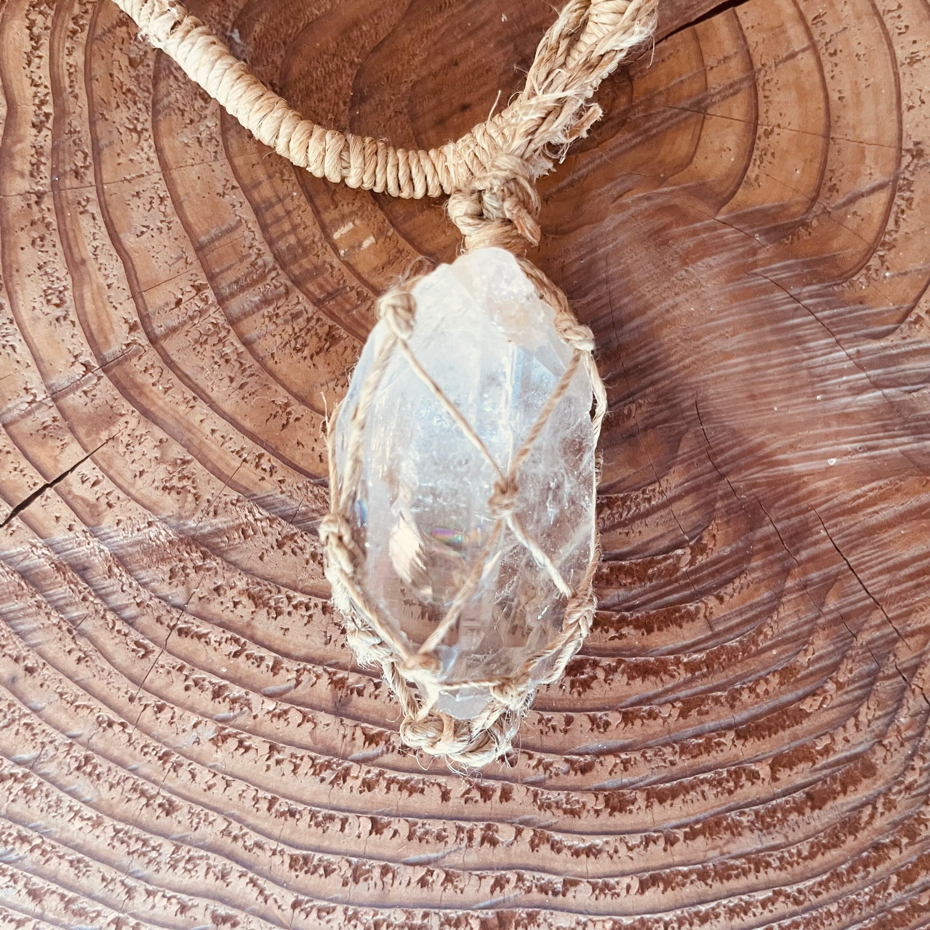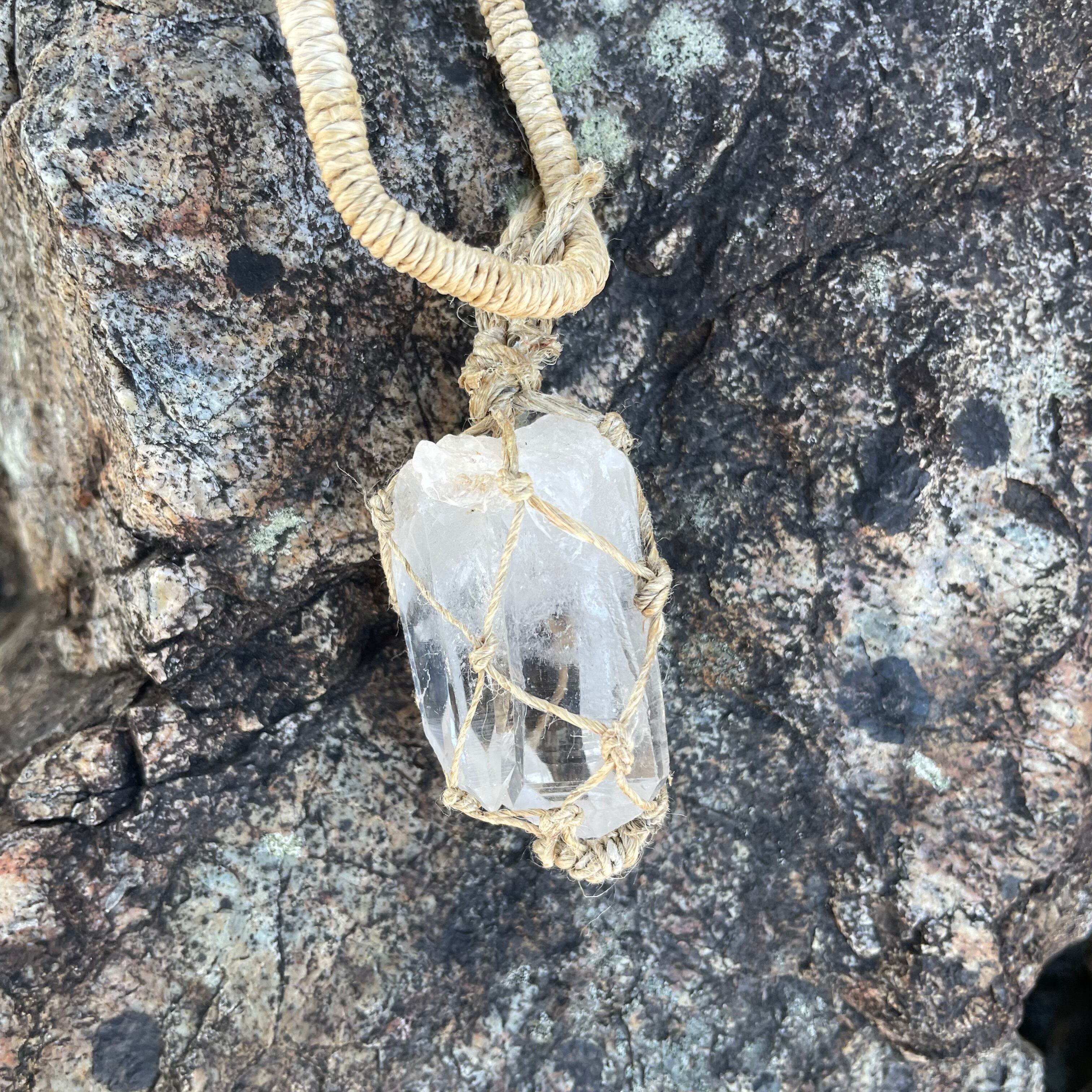 自然からの頂物、、ひとつひとつ表情があり個性豊かなクリスタルをネパールのヘンプ糸で編んで包んでいます。