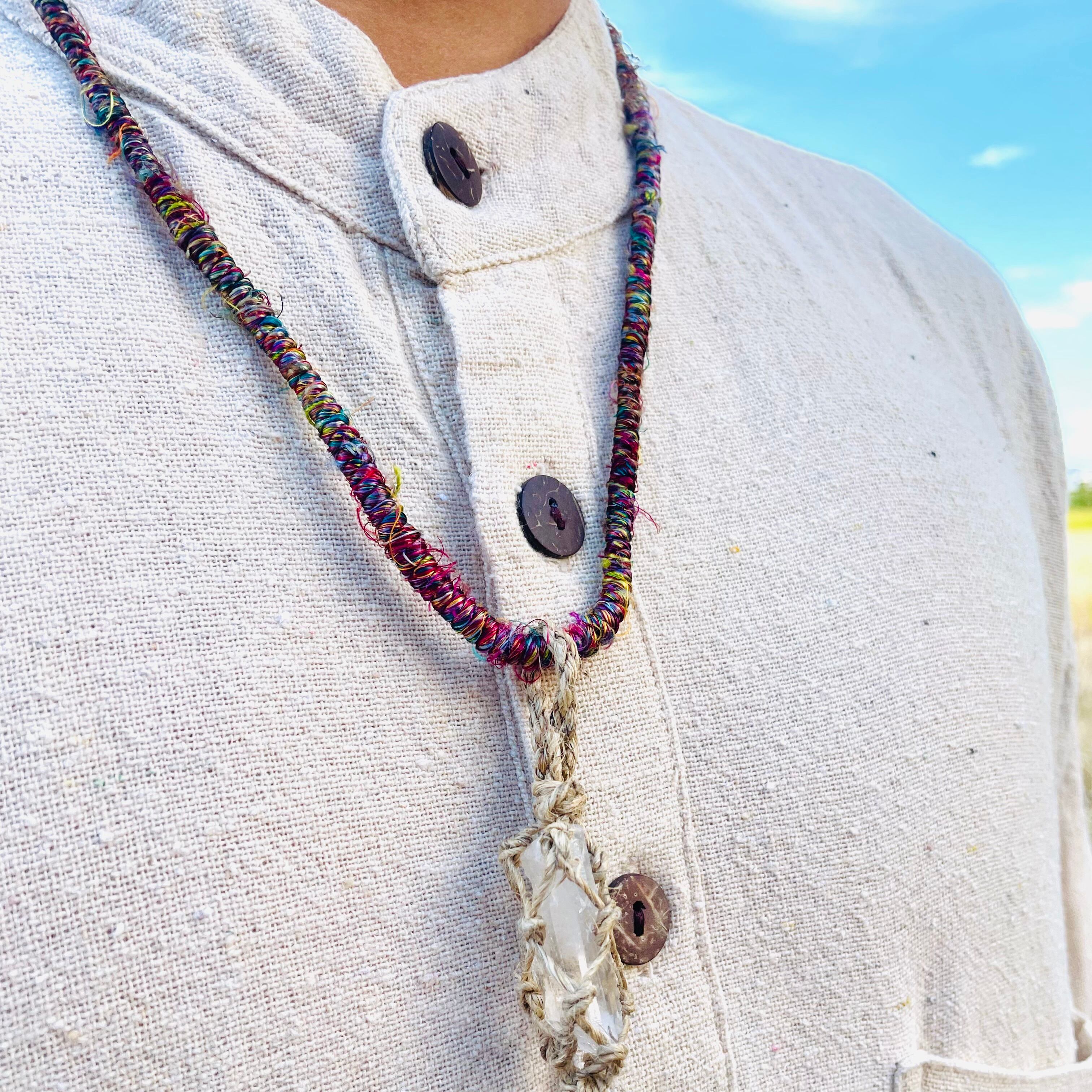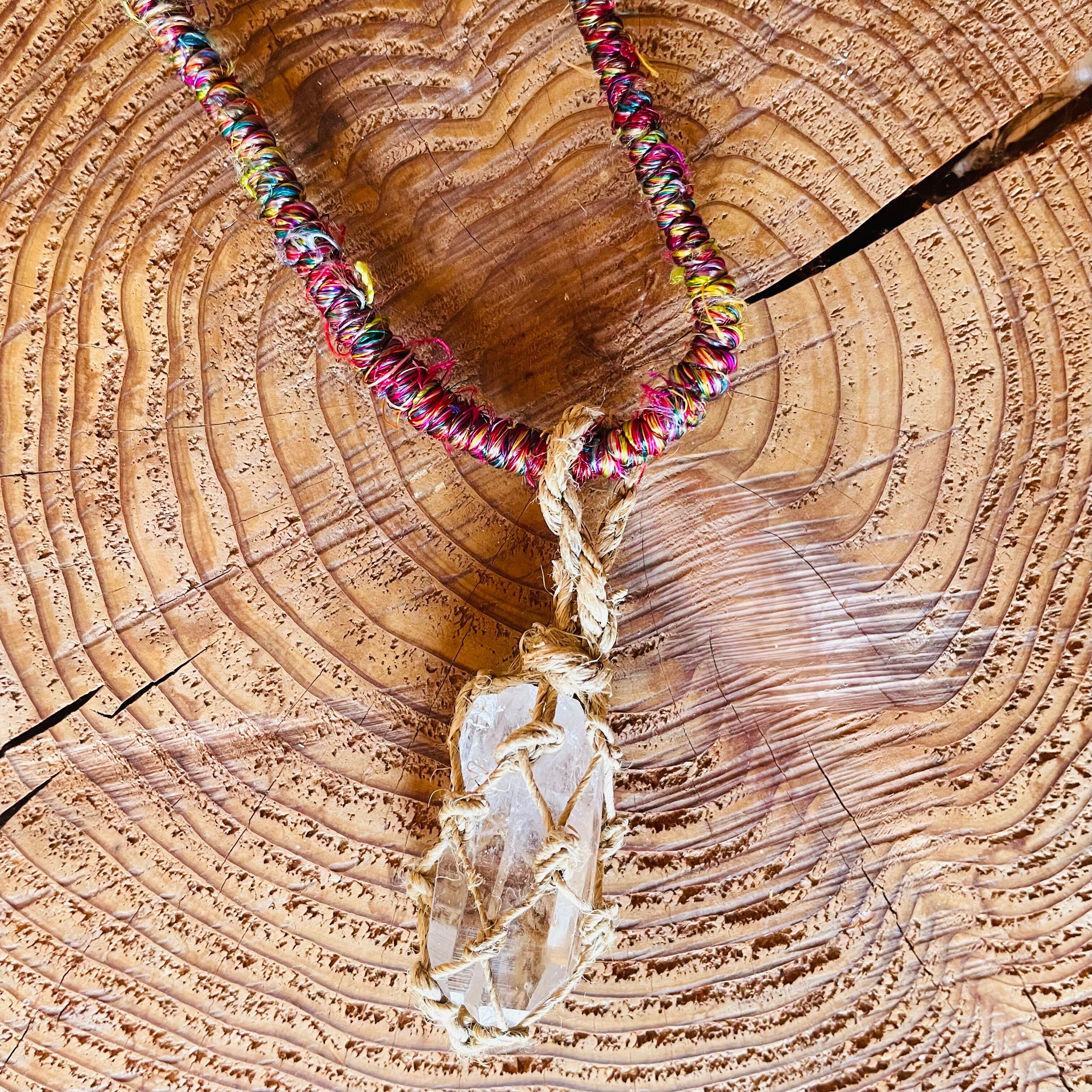 自然からの頂物、、ひとつひとつ表情があり個性豊かなクリスタルをネパールの天然ヘンプを編んで包んでいます。