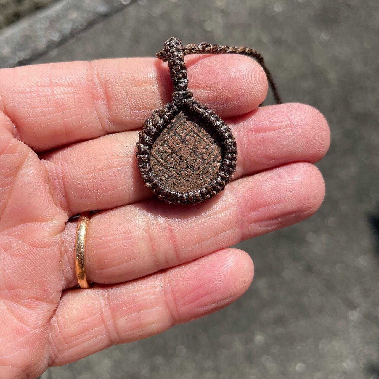 ネパールの骨董品屋さんでコインを買ってマクラメ編みのネックレスにしました!