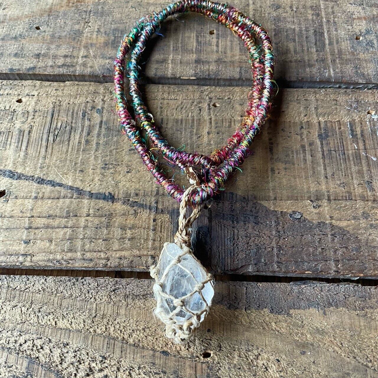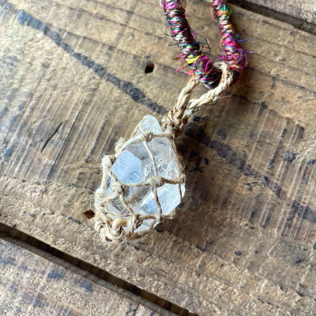 自然からの頂物、、ひとつひとつ表情があり個性豊かなクリスタルをネパールの天然ヘンプを編んで包んでいます。