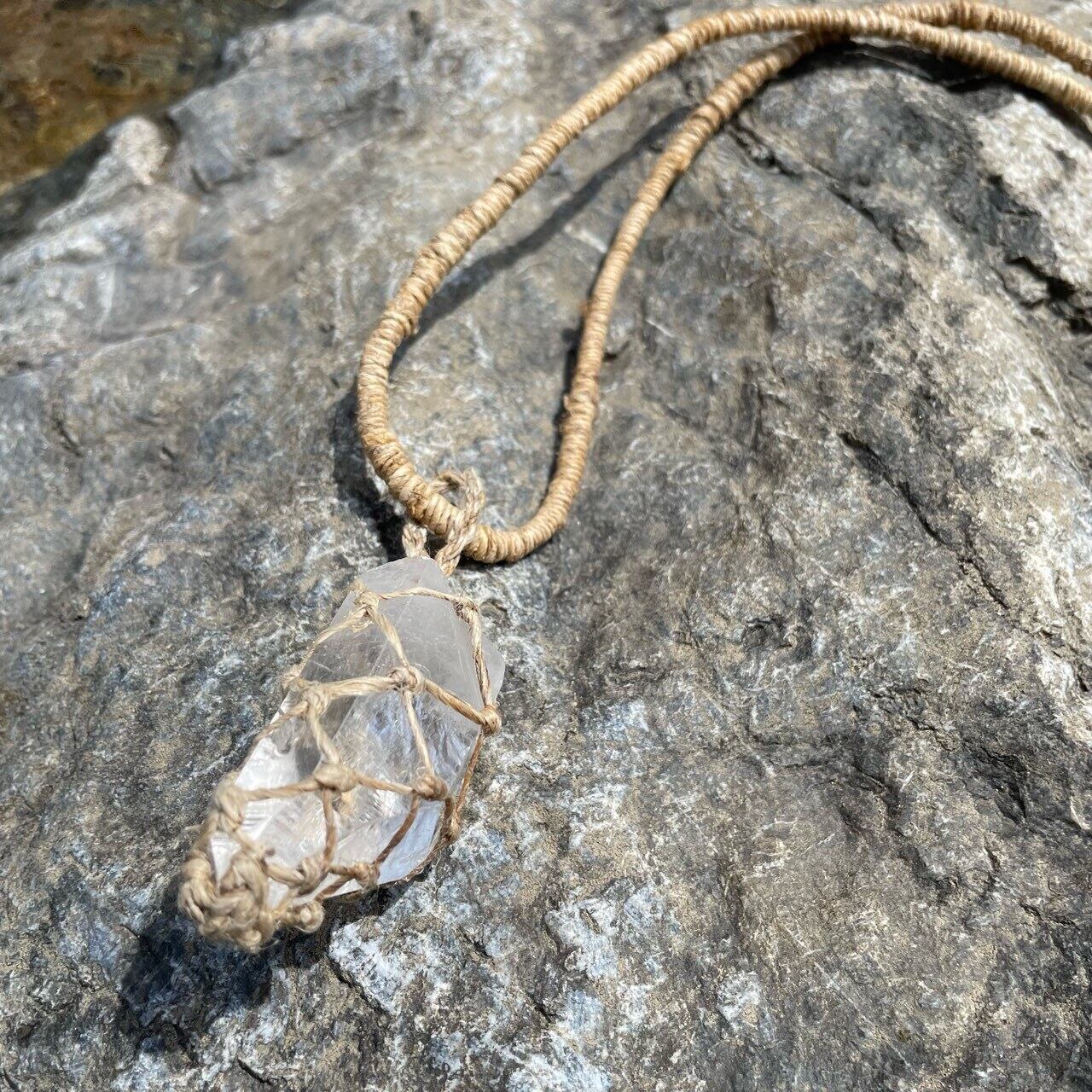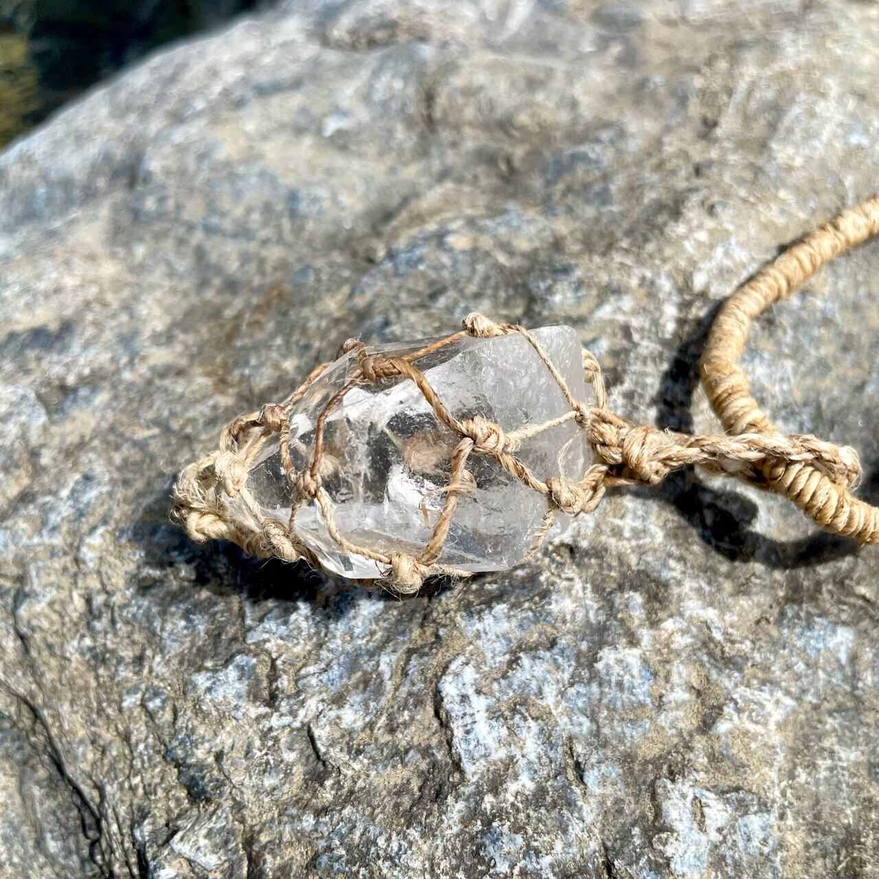 自然からの頂物、、ひとつひとつ表情があり個性豊かなクリスタルをネパールのヘンプ糸で編んで包んでいます。