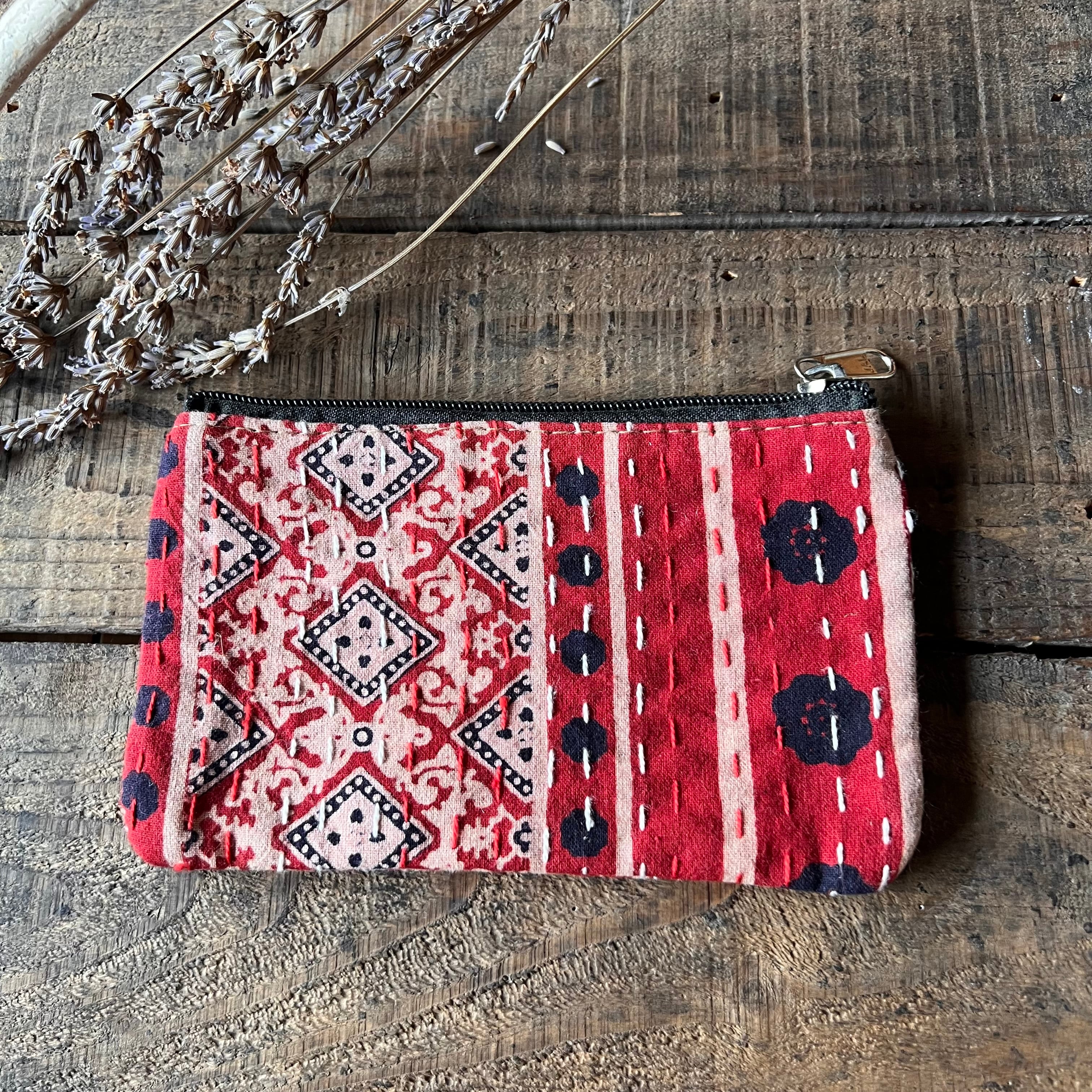 ●エスニックな布に刺し子が施された、暖かみのあるポーチです。